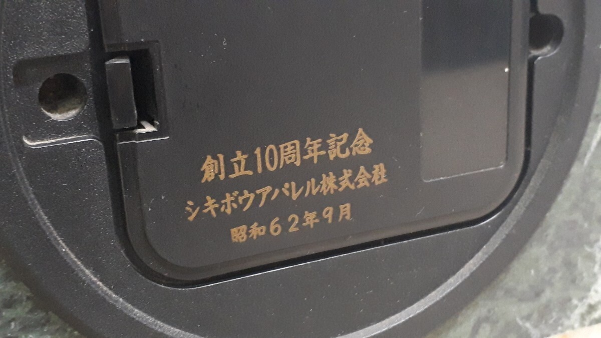 単2乾電池を用いる置き時計です。背面の表記から、記念品として配布されたもののようです。