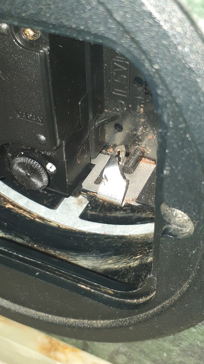 電池がセットされたまま保管されていたもので、端子に断裂したような破損が見受けられます。