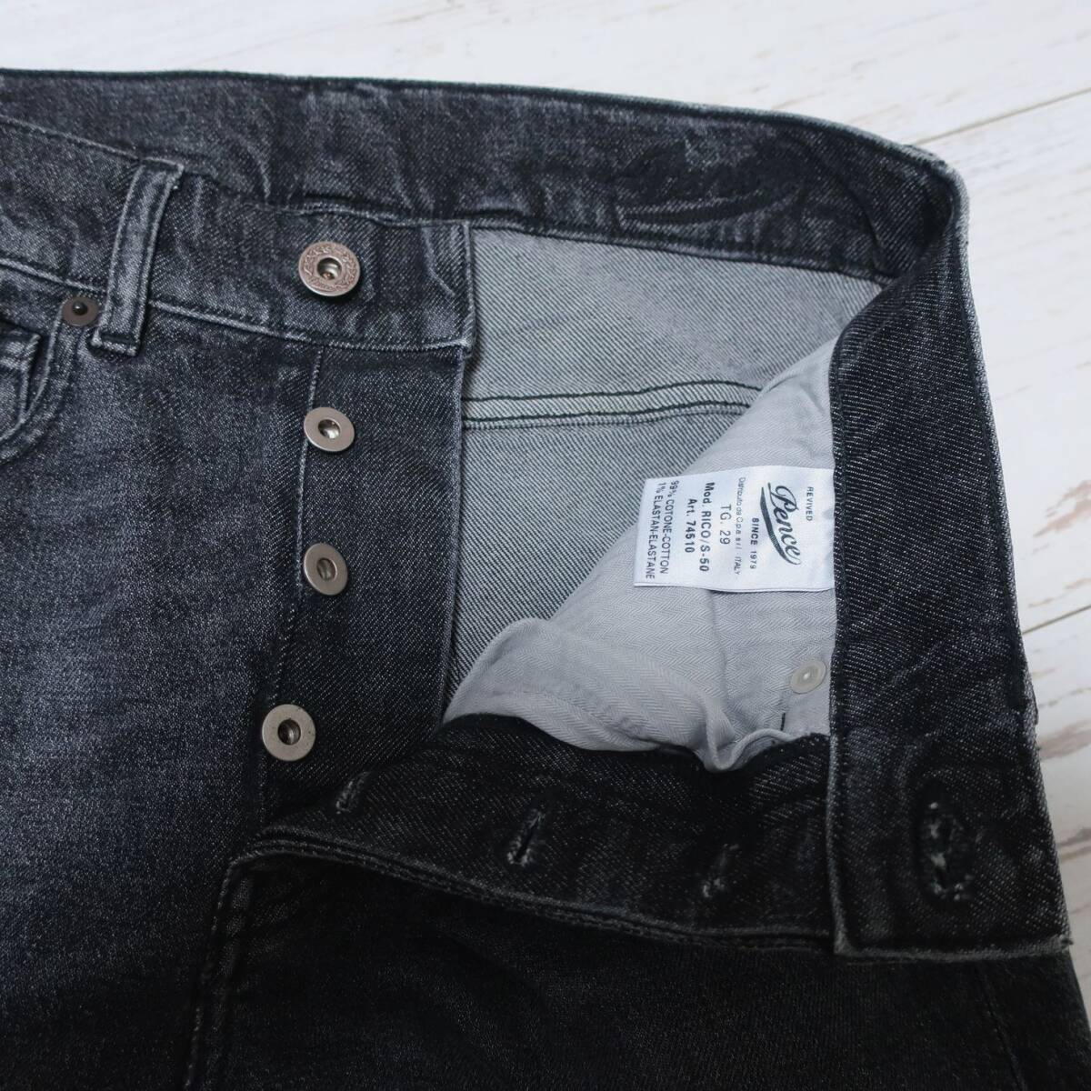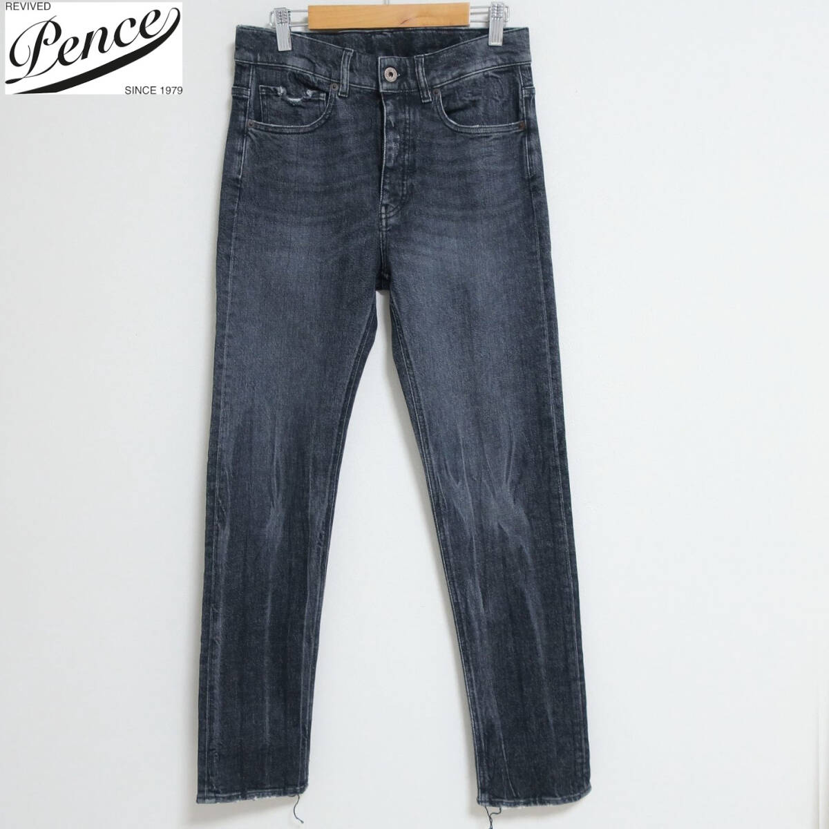 新品 未使用 PENCE 1979 ペンス メンズ 欧州 イタリアン 美脚 ジーンズ テーパード スリム パンツ デニム ブラック 黒 グレー W30 Mサイズ