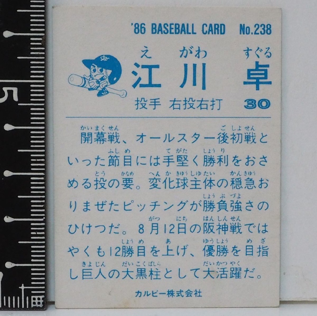 86年 カルビー プロ野球カード No.238【江川 卓 投手 読売ジャイアンツ巨人】昭和61年 1986年 当時物 Calbee おまけ 食玩 BASEBALL【中古】