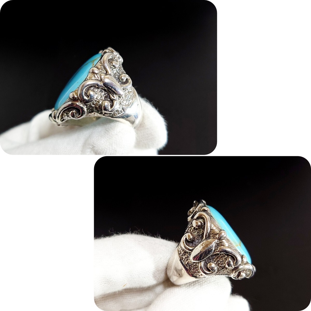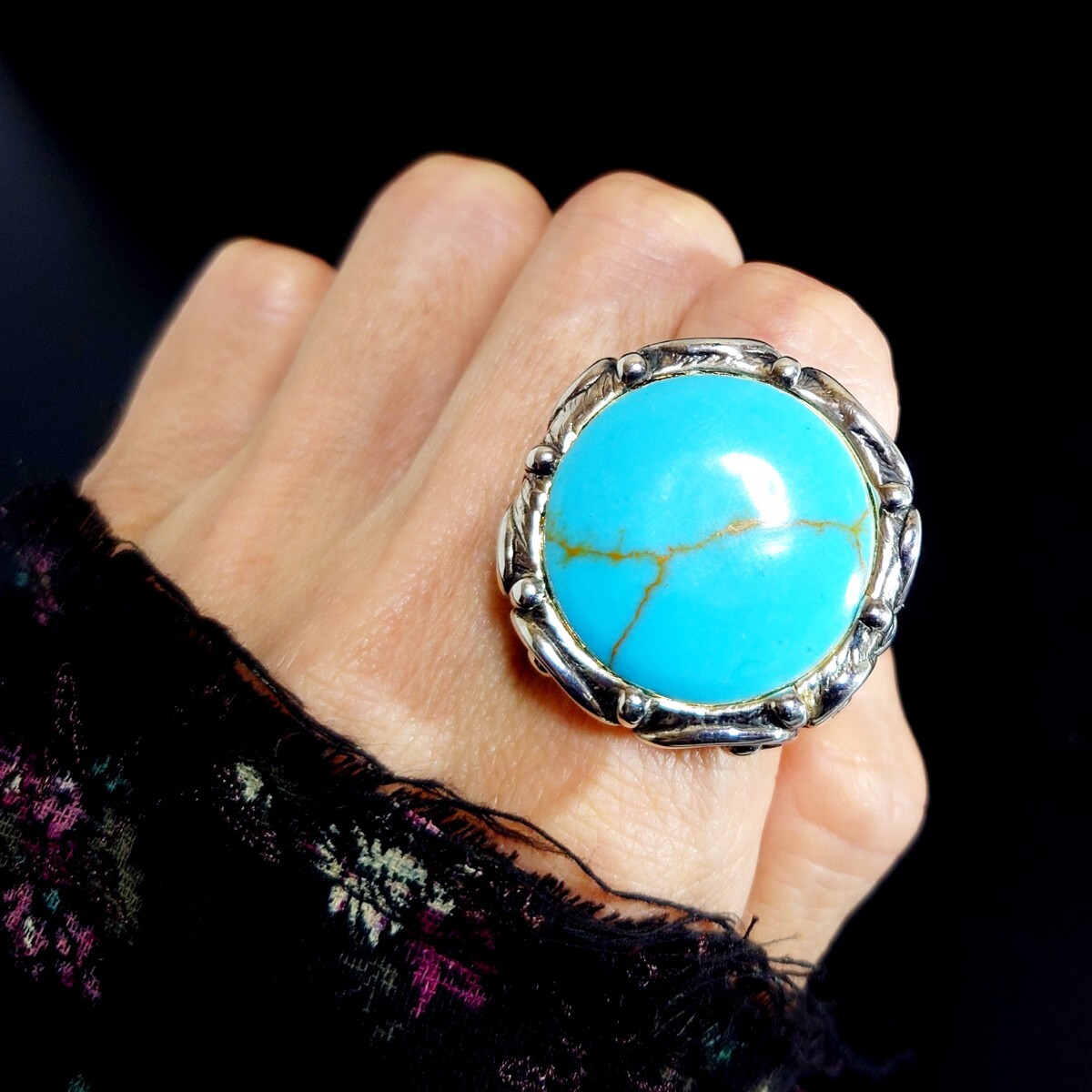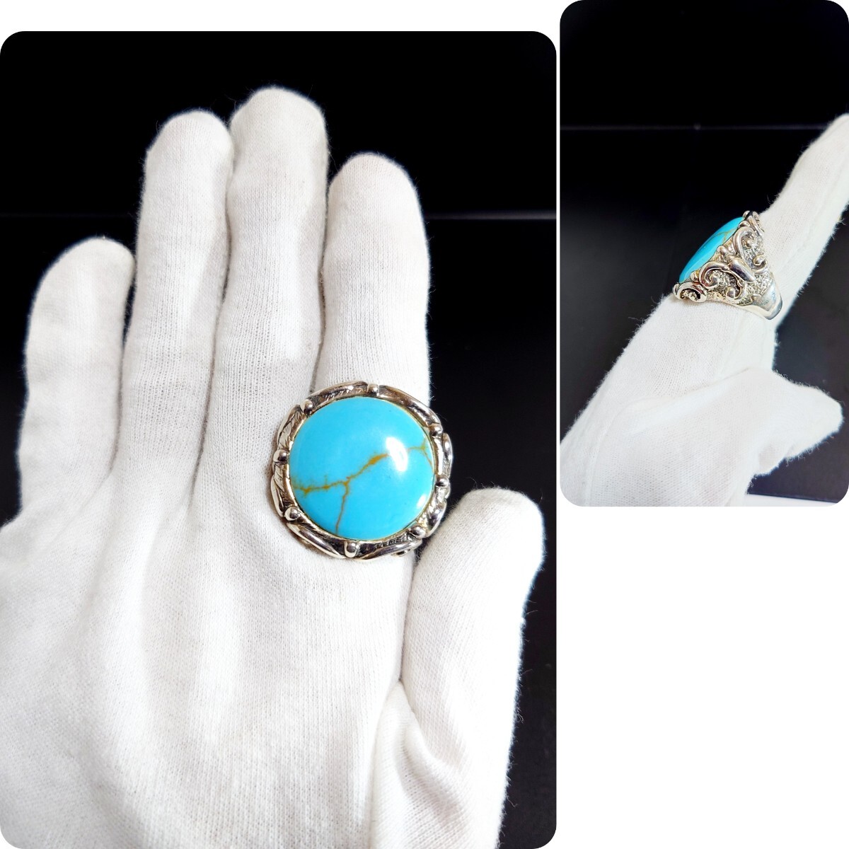 シンセティックストーン(練り石)ターコイズです。天然石の破片を高温で溶かし再度結晶化させた物になります。