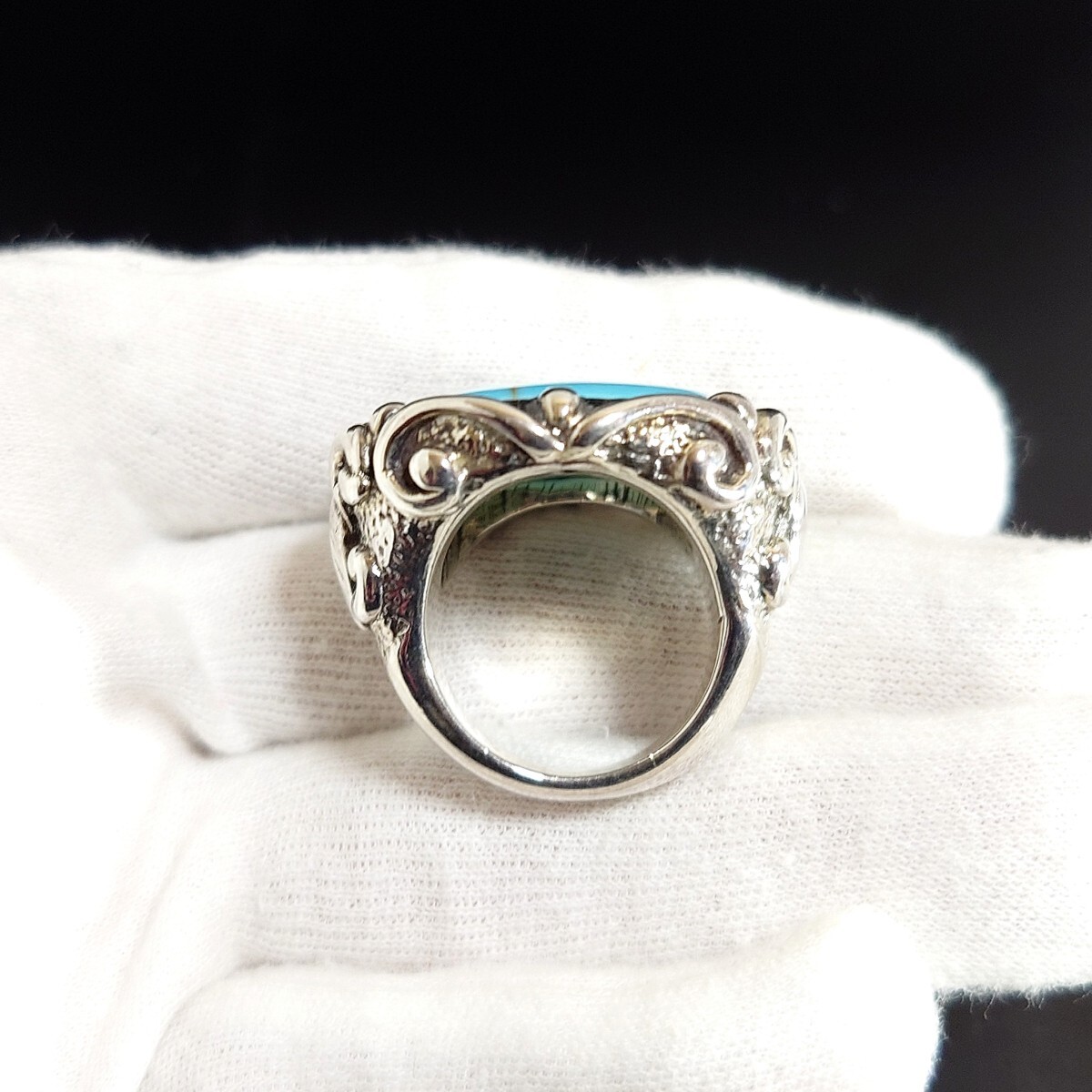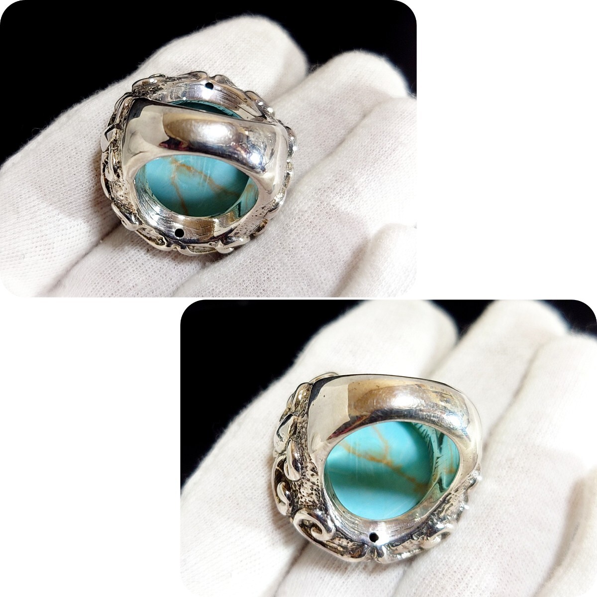 リングは薄く内部は空洞になっていてエア(空気)で銀を膨らませた難しい中空デザインという手間を掛けた職人技術で造られています。