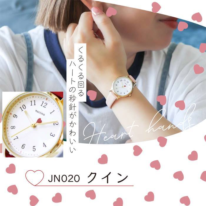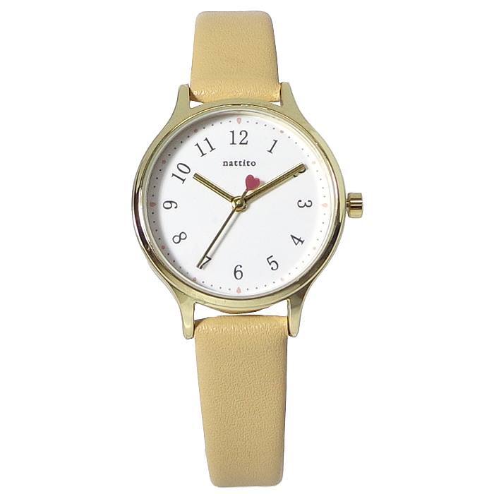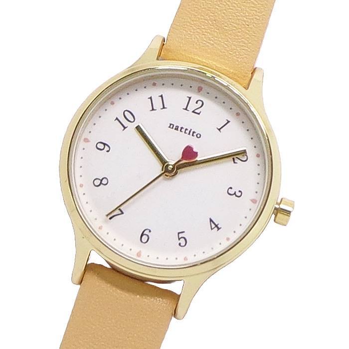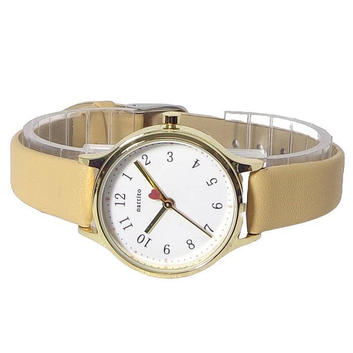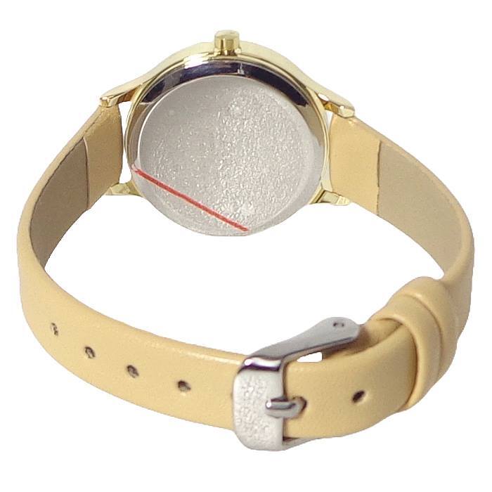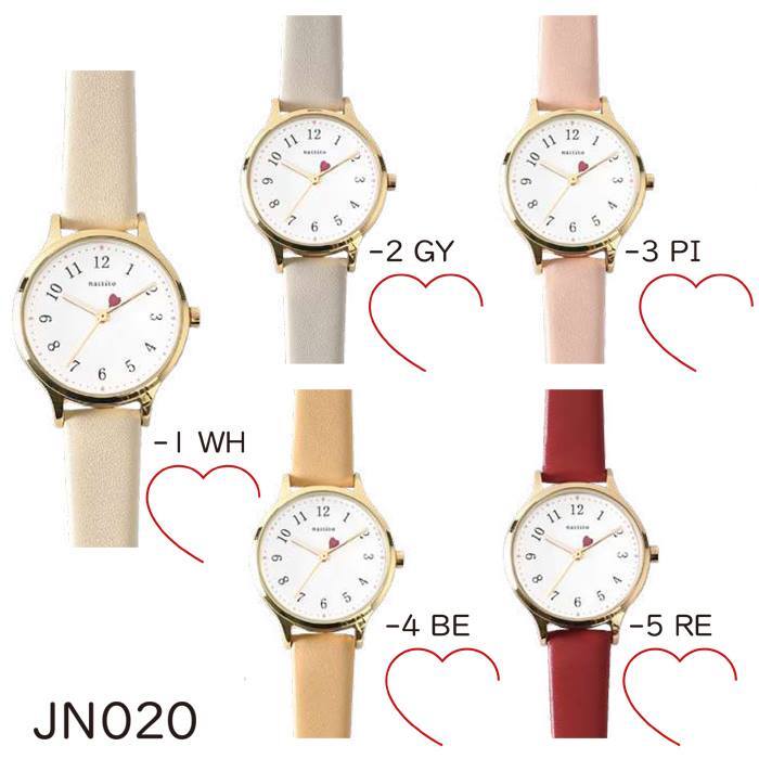 ◆4)ベージュ(BE)◆ ベルト:キャメル系ベージュ/文字盤:ホワイト/ケース・リューズ・針:ゴールド/尾錠:シルバー/インデックス:ブラック/ハート:レッド |