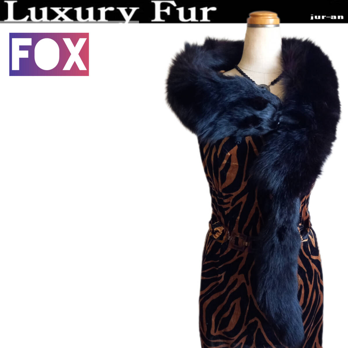 【毛皮●jur-an】特別企画SALE! 顔付きFOX一匹ショール・黒 | |
