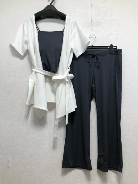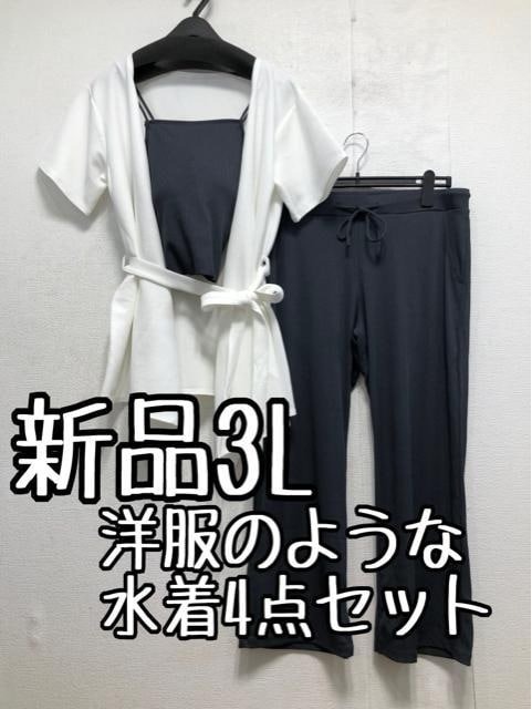 新品☆3L白系グレー系UVカット洋服のような水着4点セット♪ロングパンツ☆b912