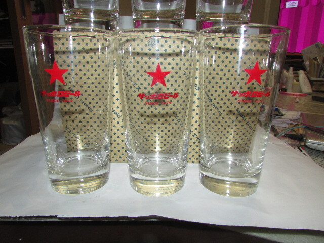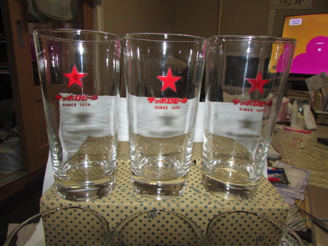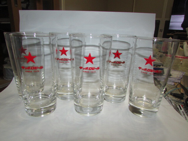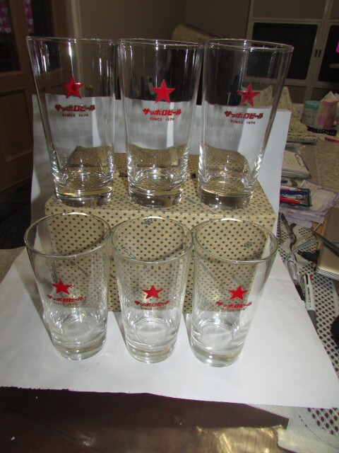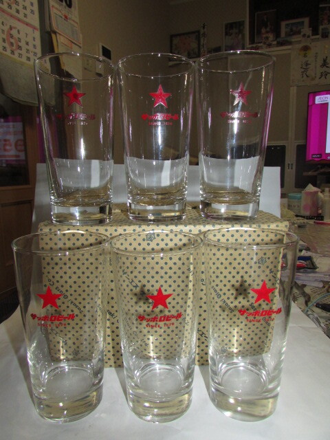 500円値引き・即決商品(酒屋・蔵出し)昭和レトロ( 古い味わいのあるサッポロビ-ル大型グラス・6客)箱入り未使用
