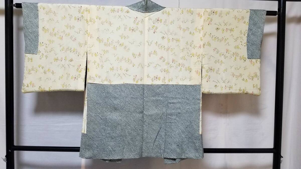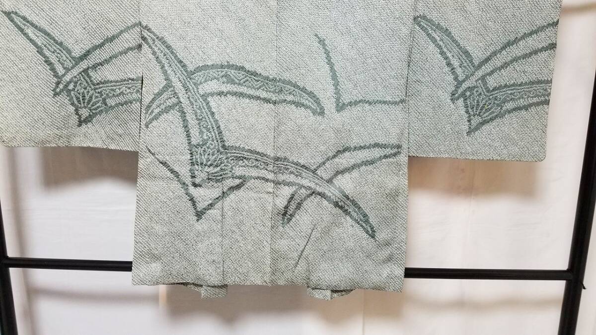 *手縫仕立て品 *中古品 *訳有品 *正絹 手組み 羽織紐付き {訳有} ☆左袖前の袖口側に薄黄色の糊点シミあり**画像10 {生地} ☆正絹 紋綸子地 ☆羽織重さ 約 450g {地色} ☆利休鼠色地「緑みの灰色」 {文様} ☆草花文様 {裏地} ☆正絹 羽二重地 ☆薄黄色地 ☆踊子文様 ◎消費税は.お預かりしておりません◎ {寸法} 丈 {肩から裾まで} 約79cm 裄丈 約62cm 袖丈 約47cm 袖幅 約32cm 前幅 約17.5cm 後幅 約30cm (発送方法) ●大阪から ゆうぱっく発送 80サイズ{補償あり} ●定形外郵便 920円 {補償なし} ◎t6227jp 桐輪 でも色々と出品しております**同梱発送可能◎ {注意事項} (注意事項 必ずお読みください!) ★基本的に土、日、祝日、ゴールデンウィーク、お盆、年末年始はお休みさせて頂いておりますので、ご連絡が遅れる場合もございますので、ご了承ください。 ★どうぞ自己紹介欄も、是非御覧になって下さいませ。 ●落札後にヤフーから届くメールに、メッセージを記載しておりますので、 そちらも必ずご覧下さいませ。 ●当方、ストア出品ではなく、一日中パソコンに向かっておらず、ご連絡は夜になる事が多いです。その点御理解の上、ご入札下さい。 ●お急ぎの場合など、到着希望の日にちが特に近い場合、ご要望にお答えできかねる場合もございます。もちろん、出来る限り、早急に対応はさせて頂きますが、その点は、何卒ご了承下さいませ。 入札前に、発送が間に合うかご質問頂けるとありがたいです ★★基本的に返品、クレームはお受け致しておりませんが、万が一、商品に不都合(大幅な寸法間違い 記載以外の着用不可能な位の、大きなシミ、傷みなどの見落とし)などがございました場合、まず、取引ナビにてご連絡下さいませ。 迅速に対応させて頂きます。 ただし ●商品がお客様の元に到着後、1週間以上経過したもの。 ●お客様側で加工など、手を加えた物。 ●お色目が、思っていたものと違っていた、または、思っていた感じと違っていた。 (画像はできるだけ実物に近い色で写るように努力していますが、素人の撮影ですので、どうしてもPCによって多少違ってくる事があります。出来るだけ、分かりやすいように説明は入れさせて頂きます。分かりにくい場合、ご質問下さい。) 以上につきましては、対応出来ませんので、ご理解下さい。 ★複数商品の落札予定のある場合、ご連絡頂きましたら、1週間程でしたら、お取り置させて頂きます。 お気軽に、お申し出下さいませ。 ★送料は、1個で発送が無理な場合は、こちらよりご連絡させて頂きます。 | |||