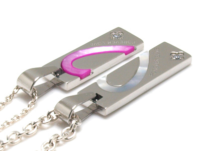 メンズはライトシェルハートプレート、レディースはピンクシェルハートプレートになり、シェルの部分はふたつ並べるとハートマークになります