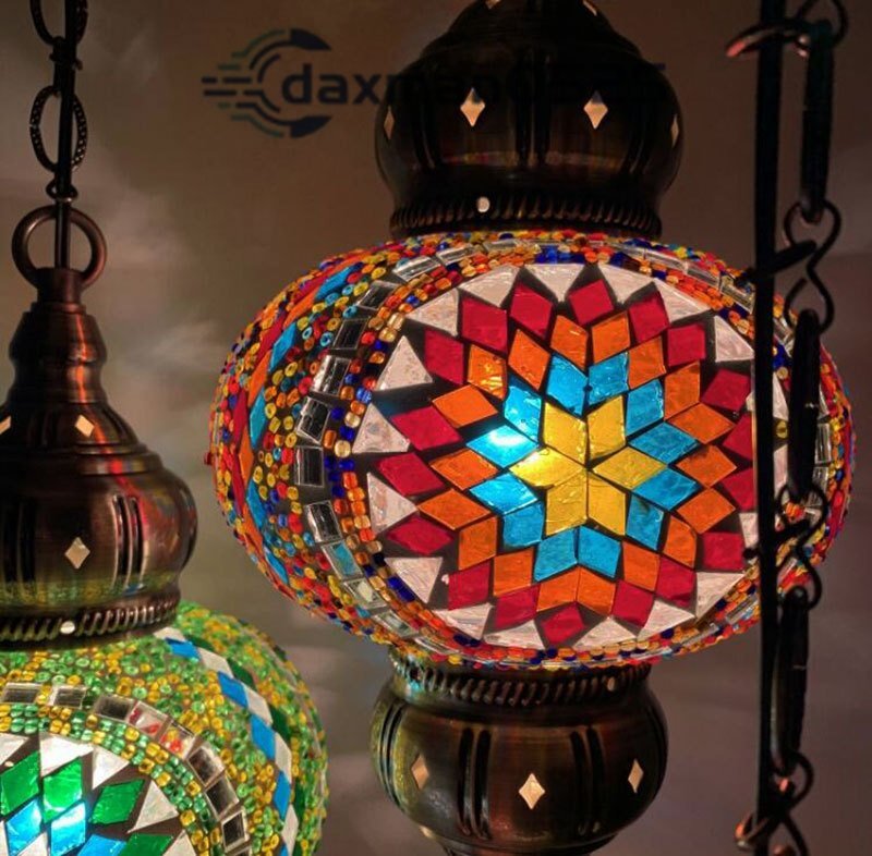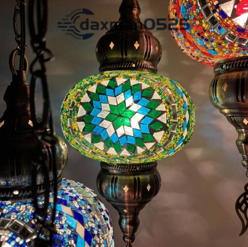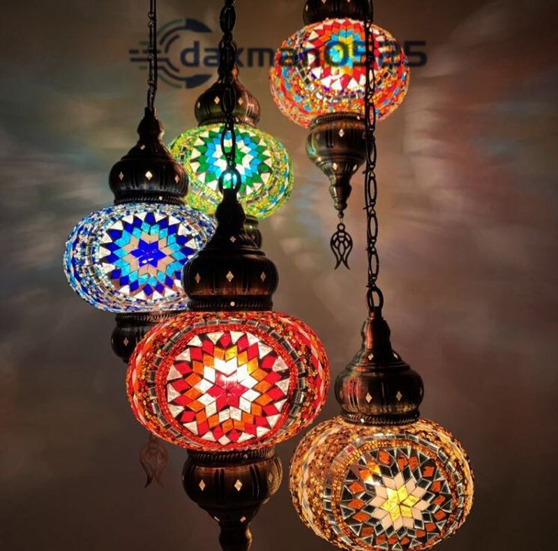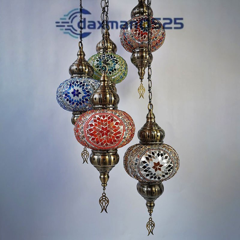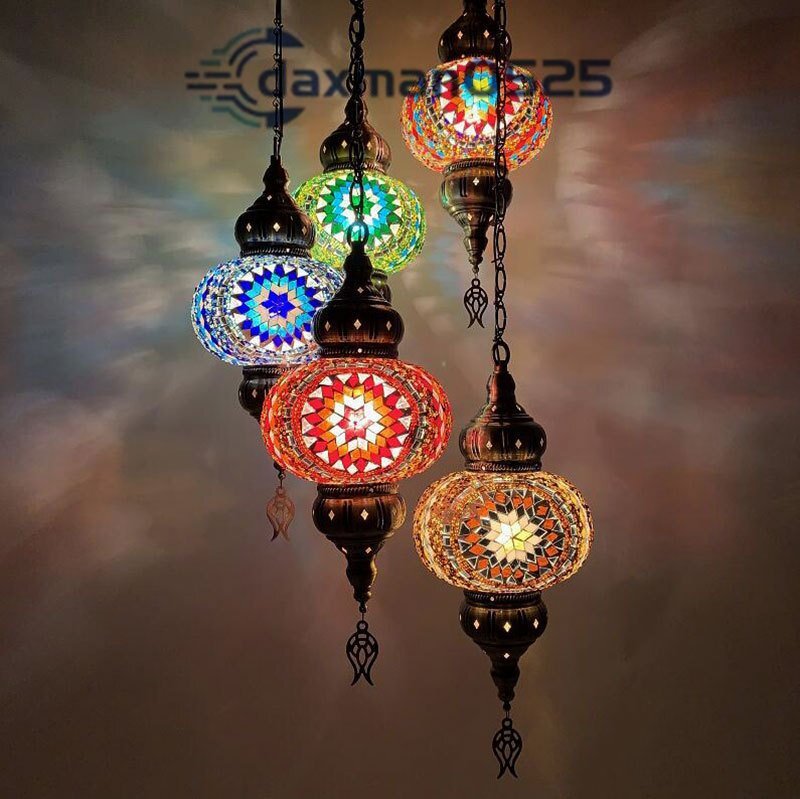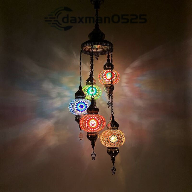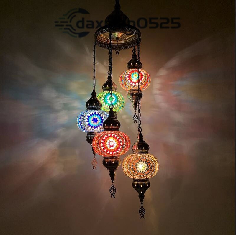 人気新品トルコランプ 職人手作り カラーガラス 吊り下げ照明 リビング、寝室、レストラン、カフェー、ホテル、民宿、バー 飾り 5灯