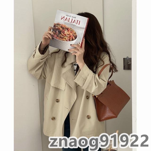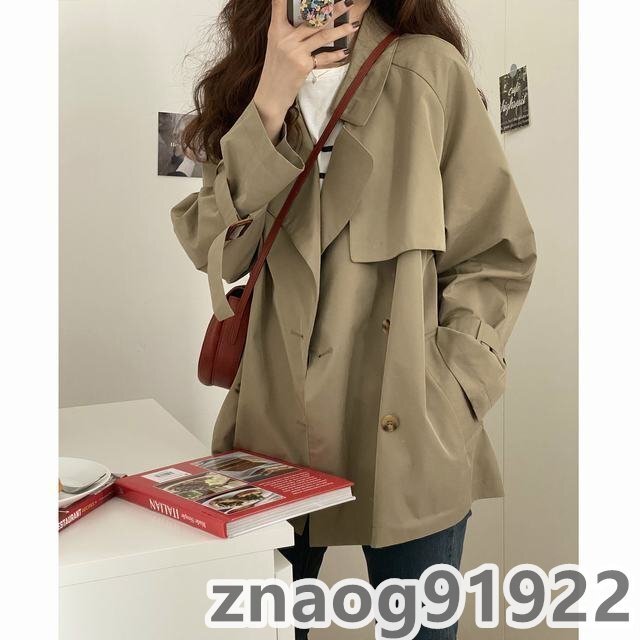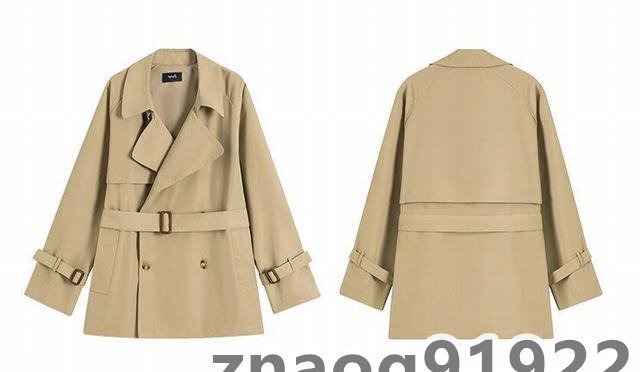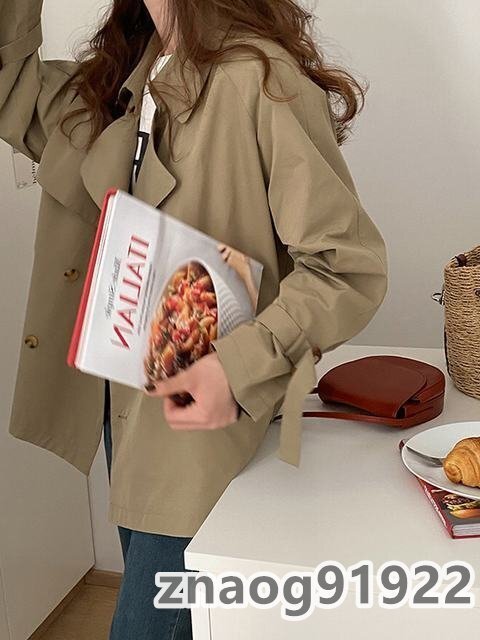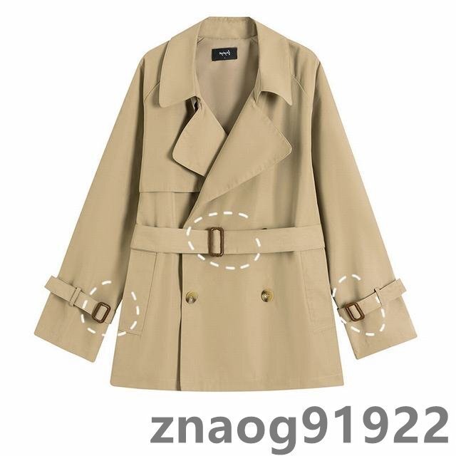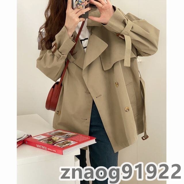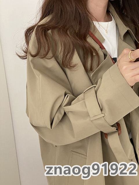 トレンチコート ショート丈 レディース 春 秋 オシャレ ジャケット ライトアウター スプリングコート カーキ XL