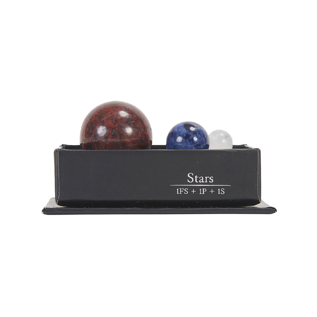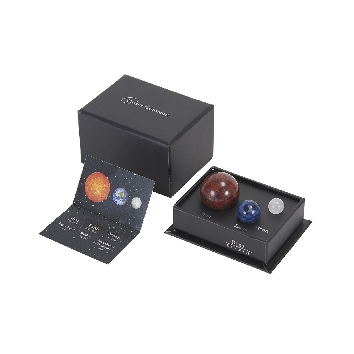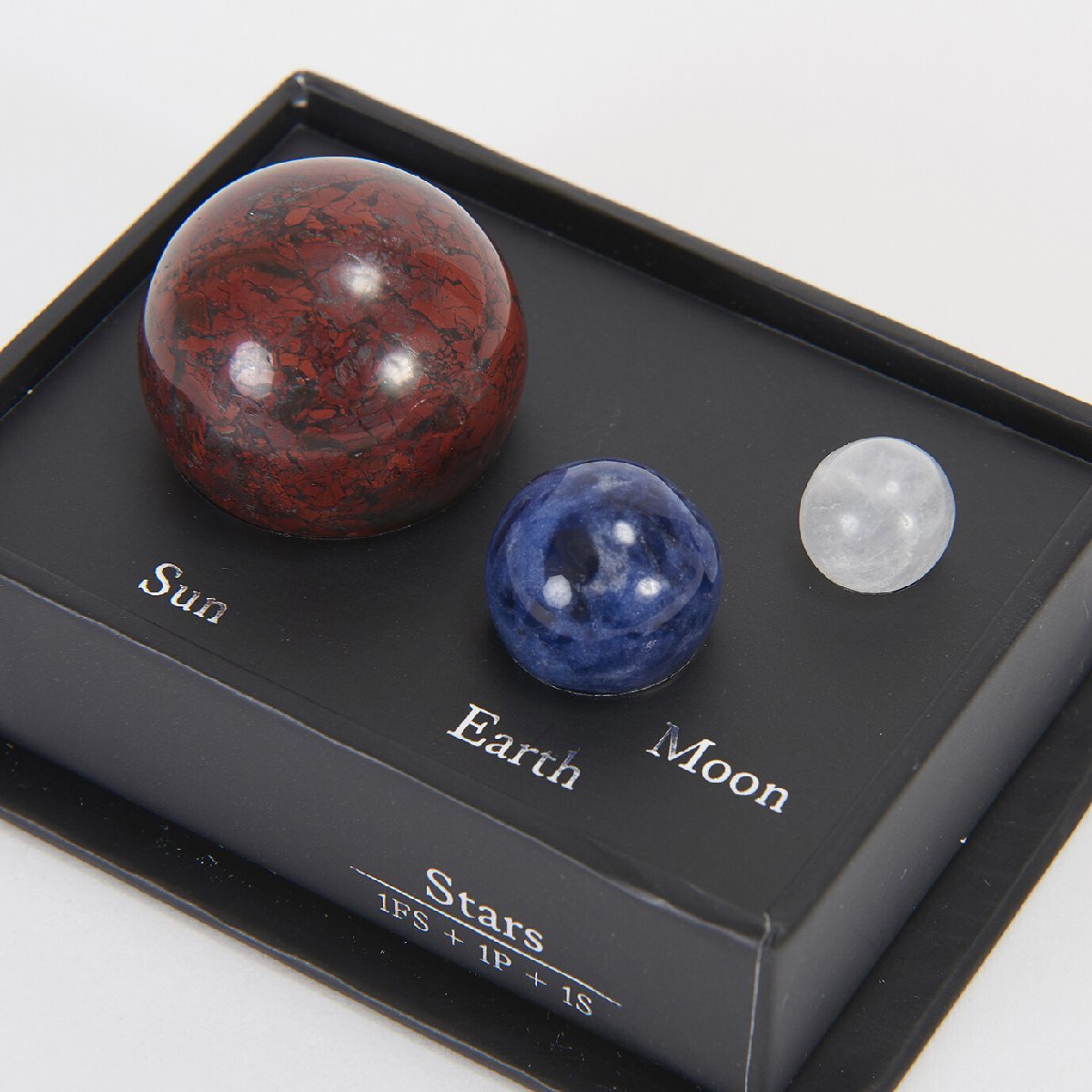 太陽系の中心にあたる太陽と惑星、さらに月をジェムストーン(天然石)で表現し、手のひらに乗せたり自分好みに並べたりと様々な楽しみ方ができます。