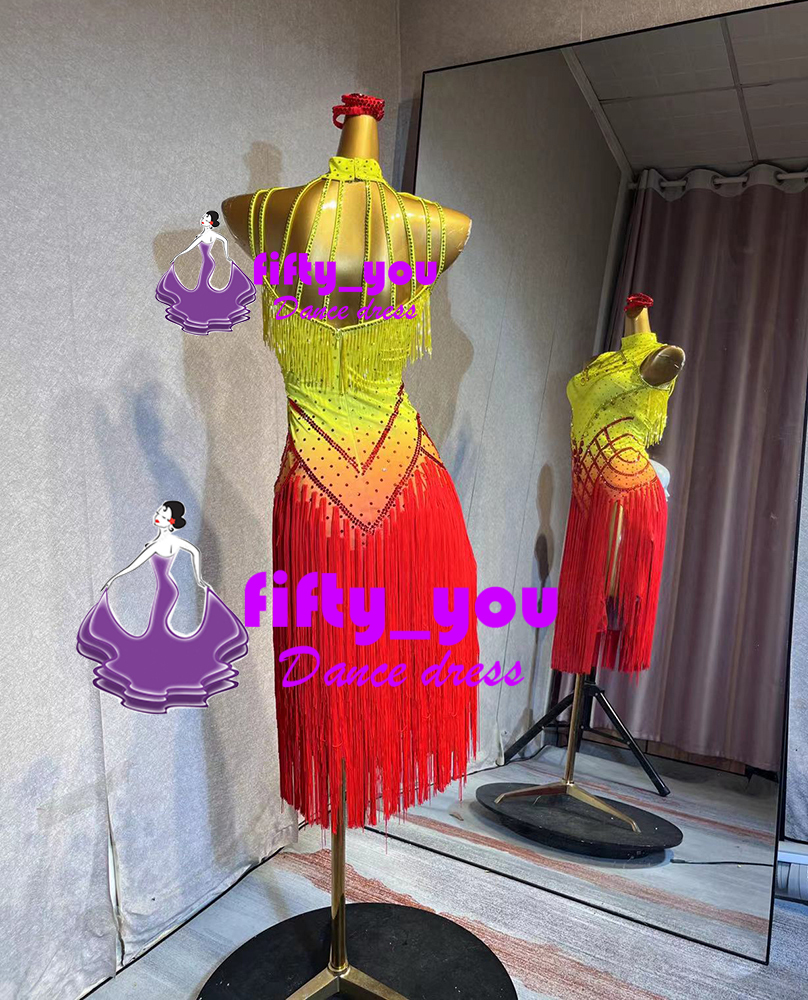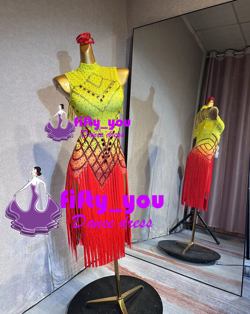 新品fifty_you レディース社交ダンスドレス  競技高級ドレス サイズセミオーダー ラテンドレス フリンジ飾り グラデーション