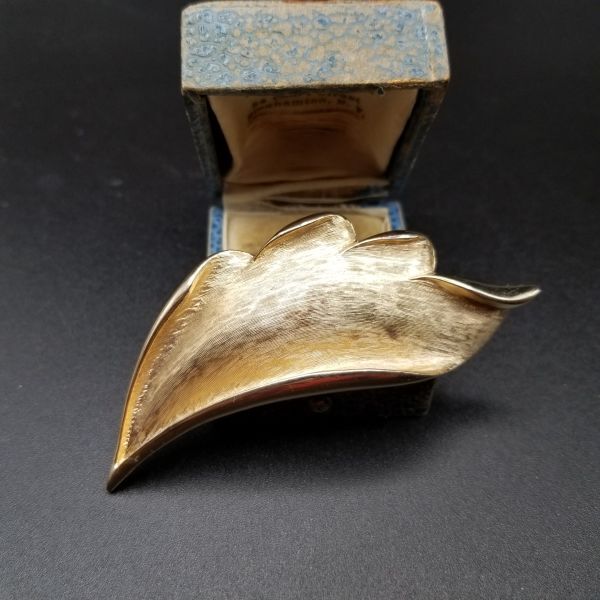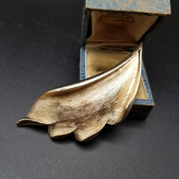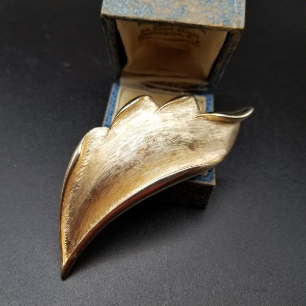 クラシックエレガント 葉 ヴィンテージ ブローチ リーフ カーブ ゴールドトーン アールデコ レトロ コスチュームジュエリー 存在感 AJX①30