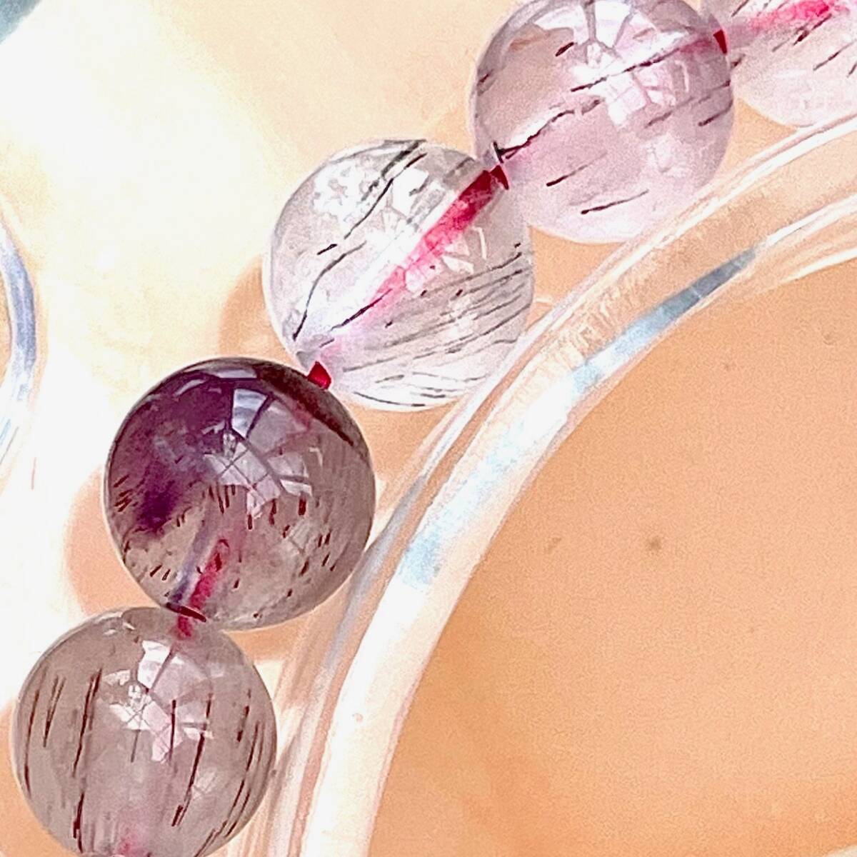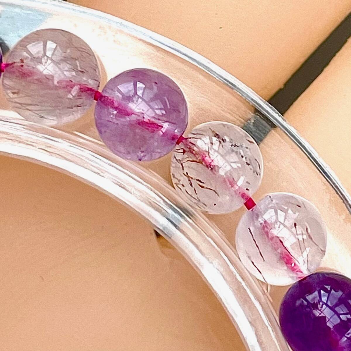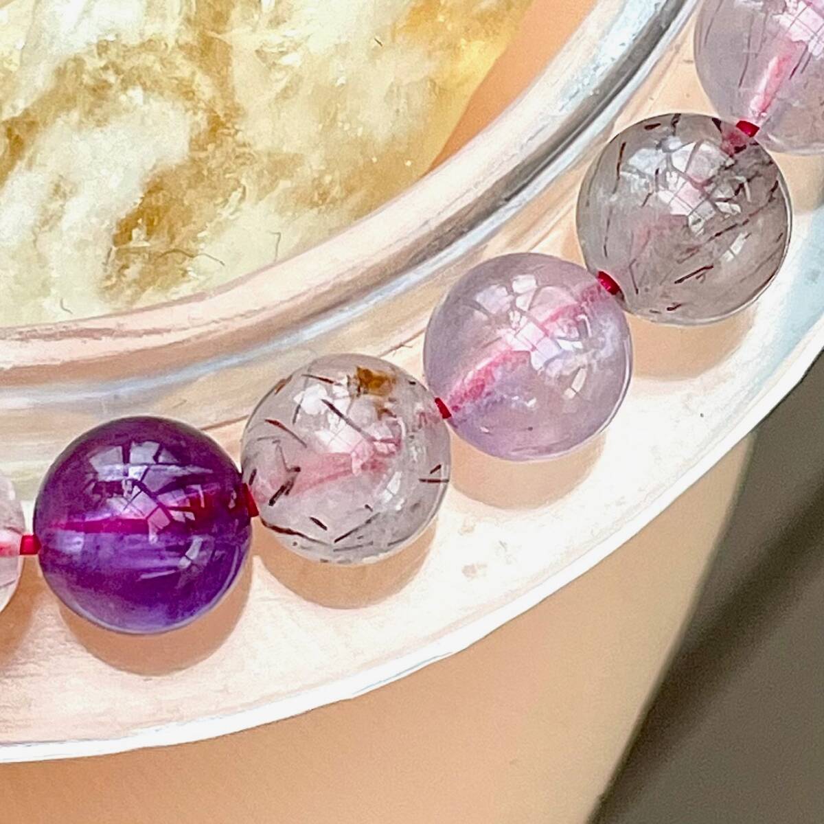 強力な7つのエネルギーを纏うことから最強のパワーストーンと言われるスーパーセブン。万能の天然石、天使の導きなどの言葉を持ちます。ファントムを持つ玉を繋ぎました。