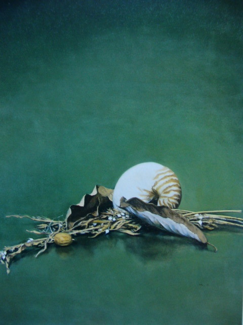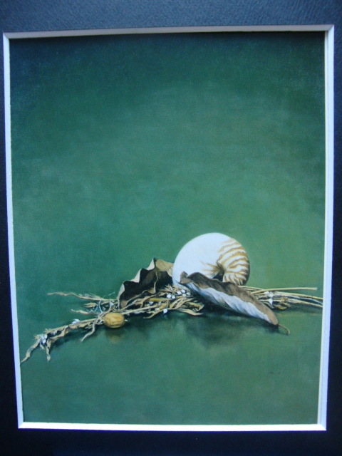 青木美知枝、「オーム貝」、希少画集・額装画、日本製・新品額縁にて額装致します、状態良好、日本人画家