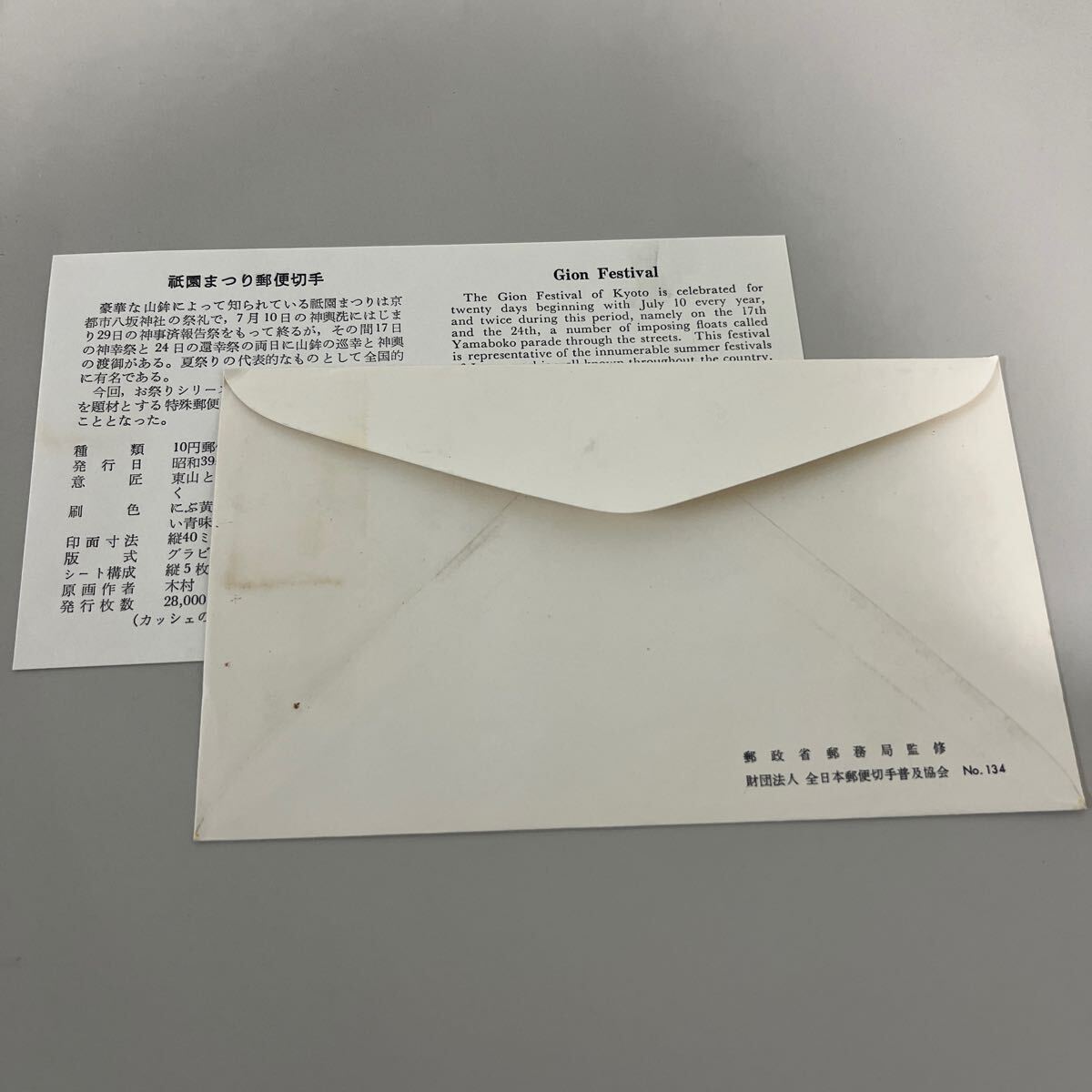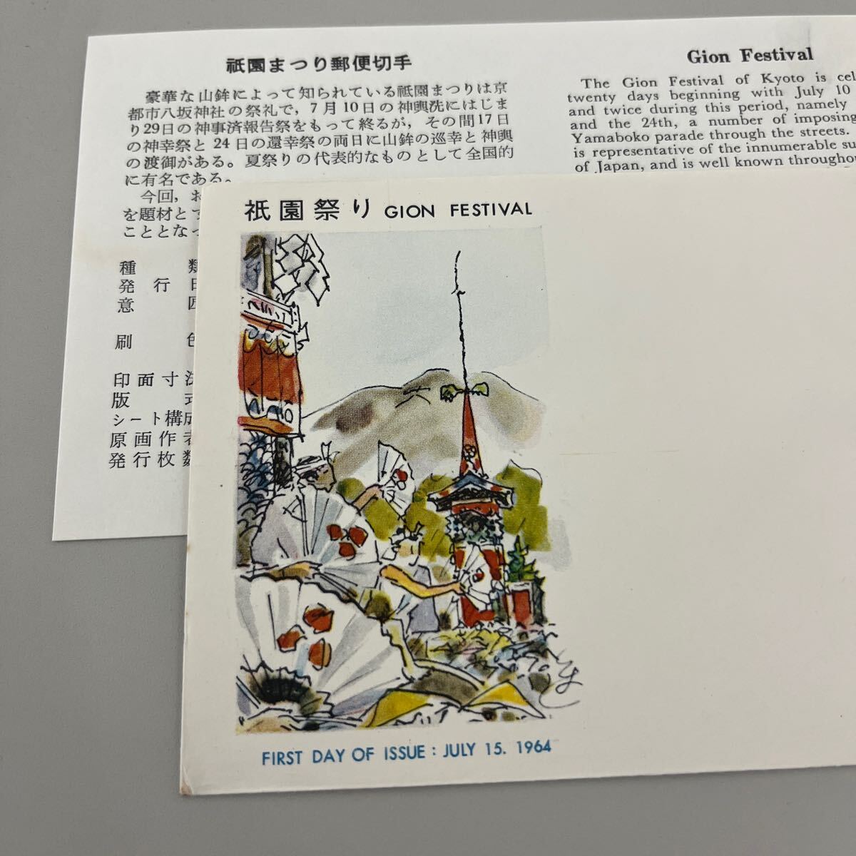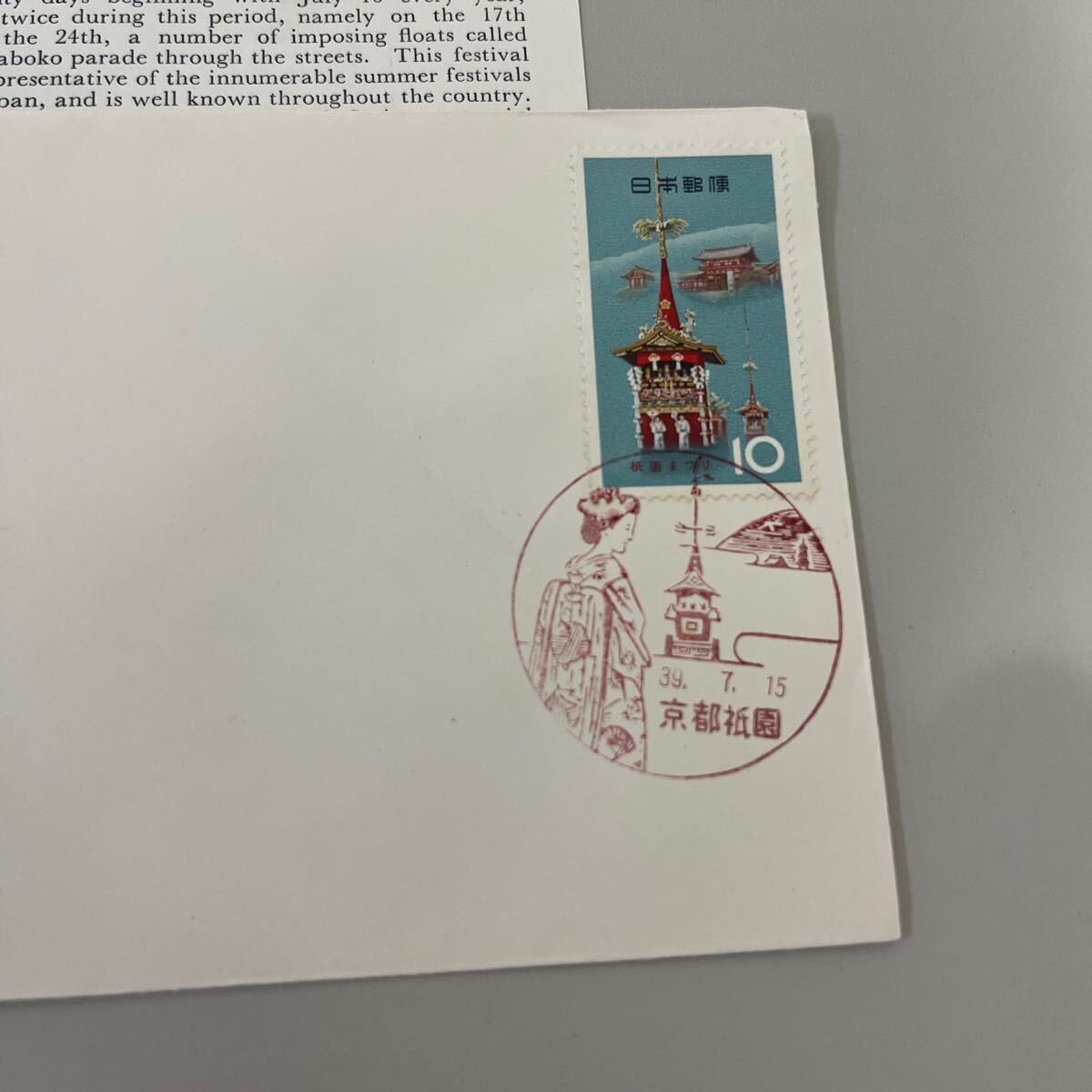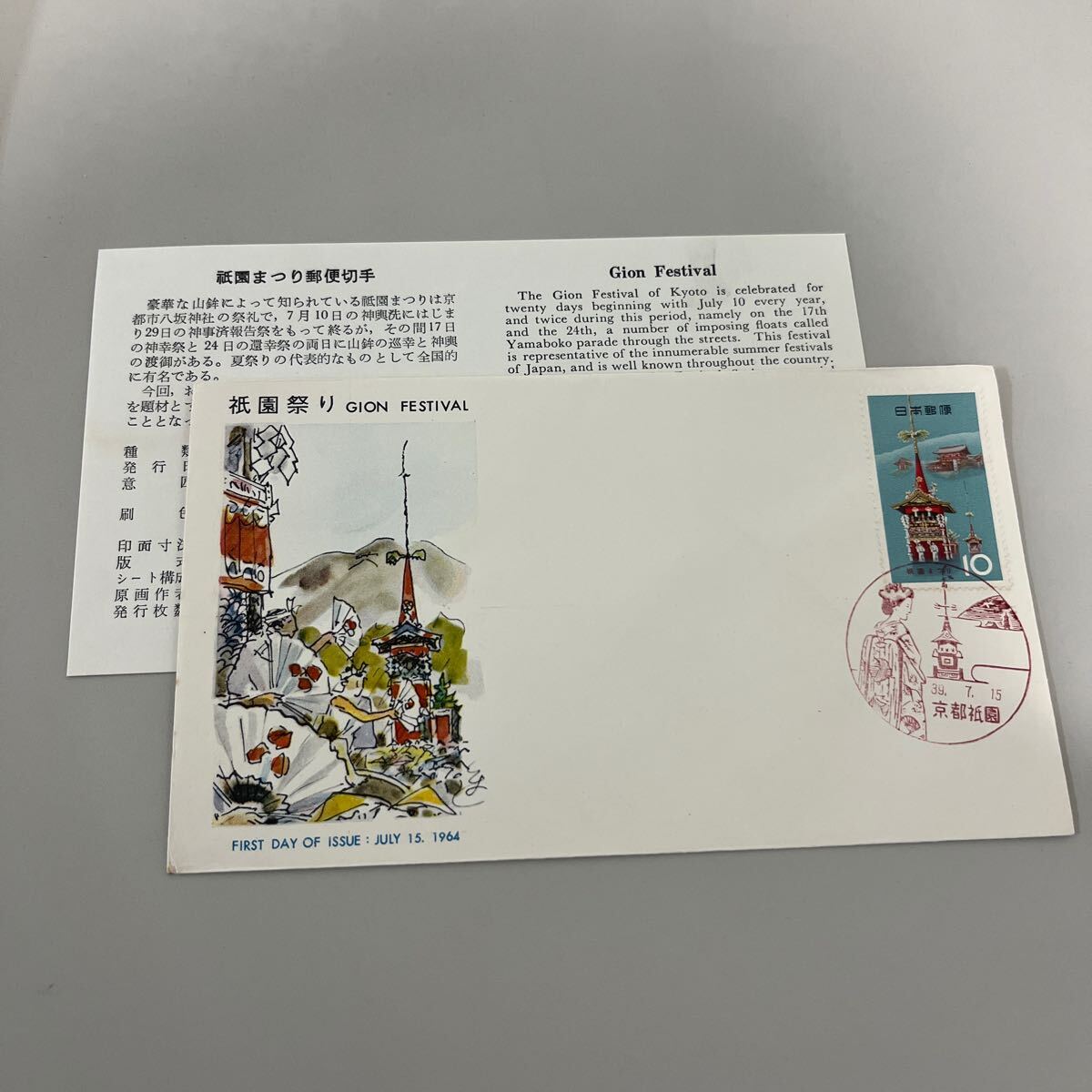 昭和39年 お祭りシリーズ祇園祭り記念切手 初日カバーFirst day Cover 1964、7.15京都祇園印 【送料84円】(墨)