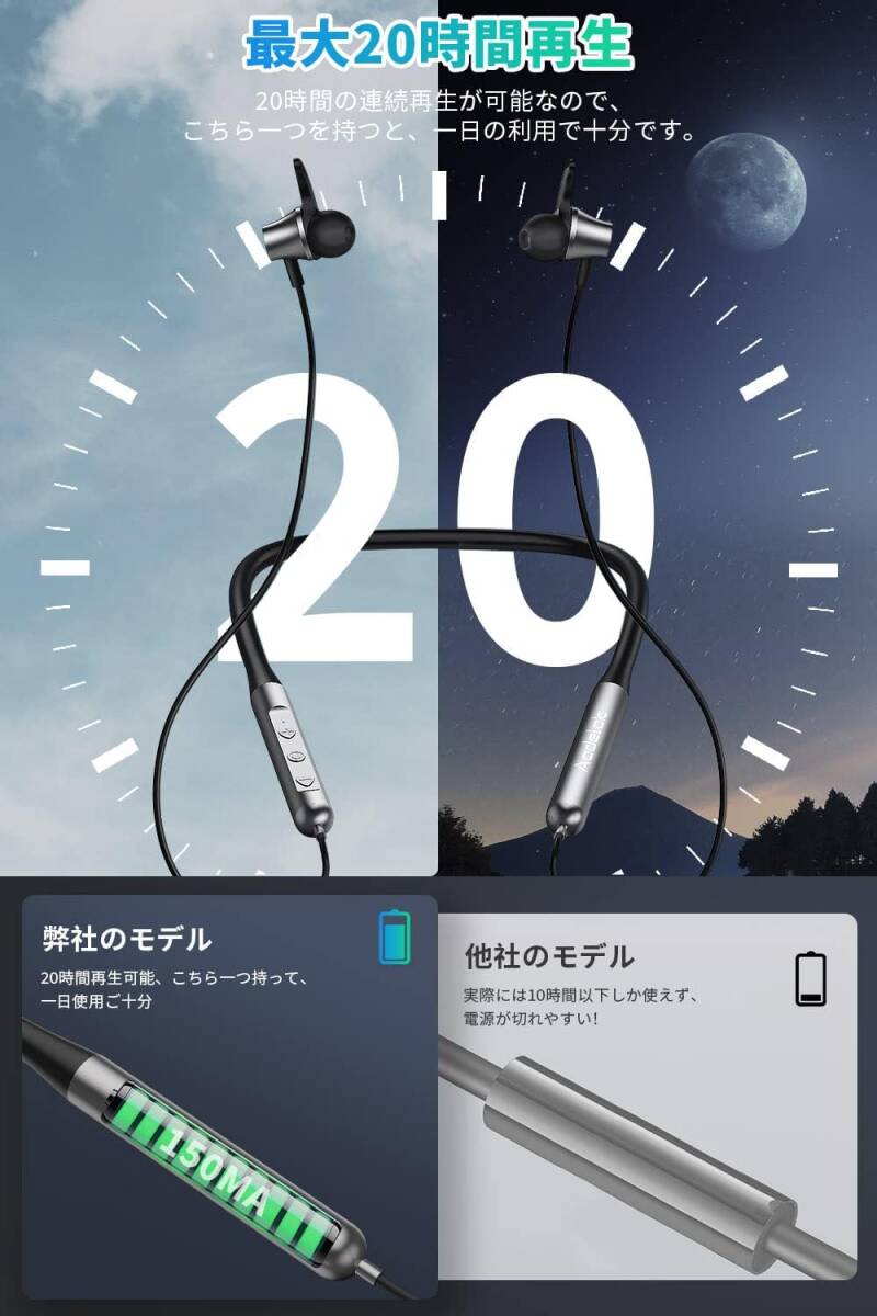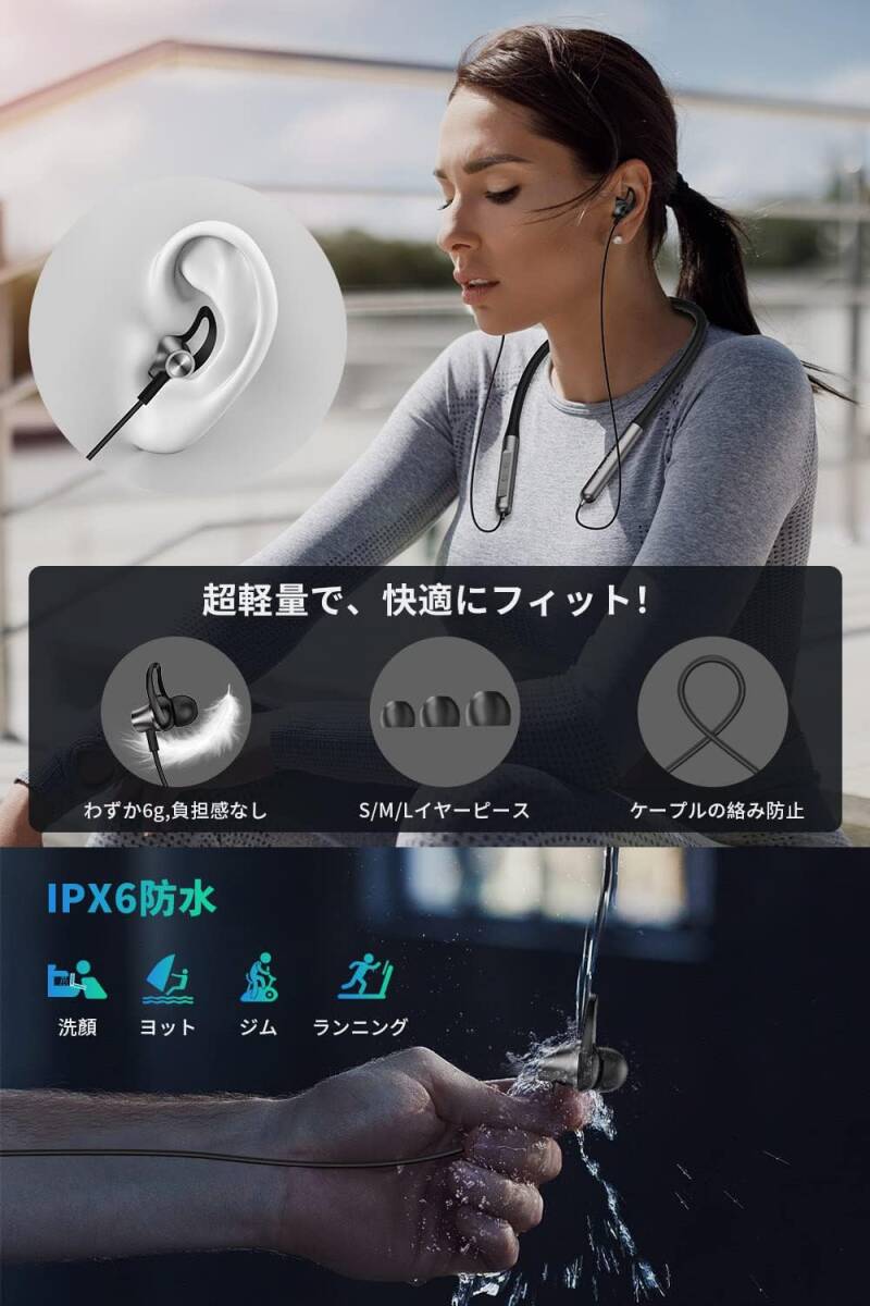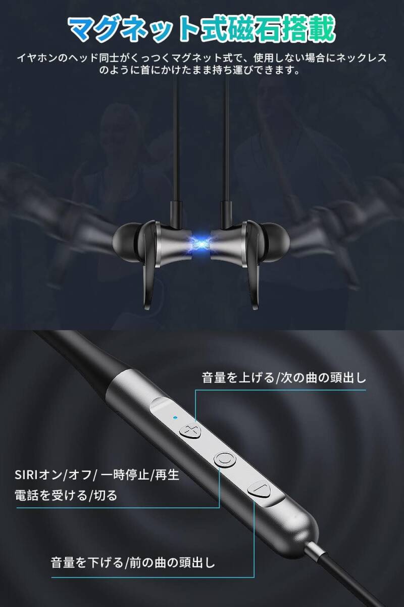 ネックバンド型イヤホン Bluetooth イヤホン スポーツ ブルートゥース イヤホン Bluetooth 5.3技術 最大20時間連続再生 Type-c急速充電 マイク付き マグネット搭載 音量調節 IPX6防水 自動ペアリング テレワーク/ランニング/ゲーム PC/iOS/Androidなど対応