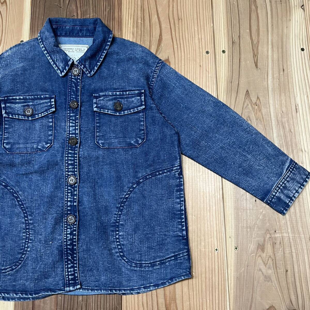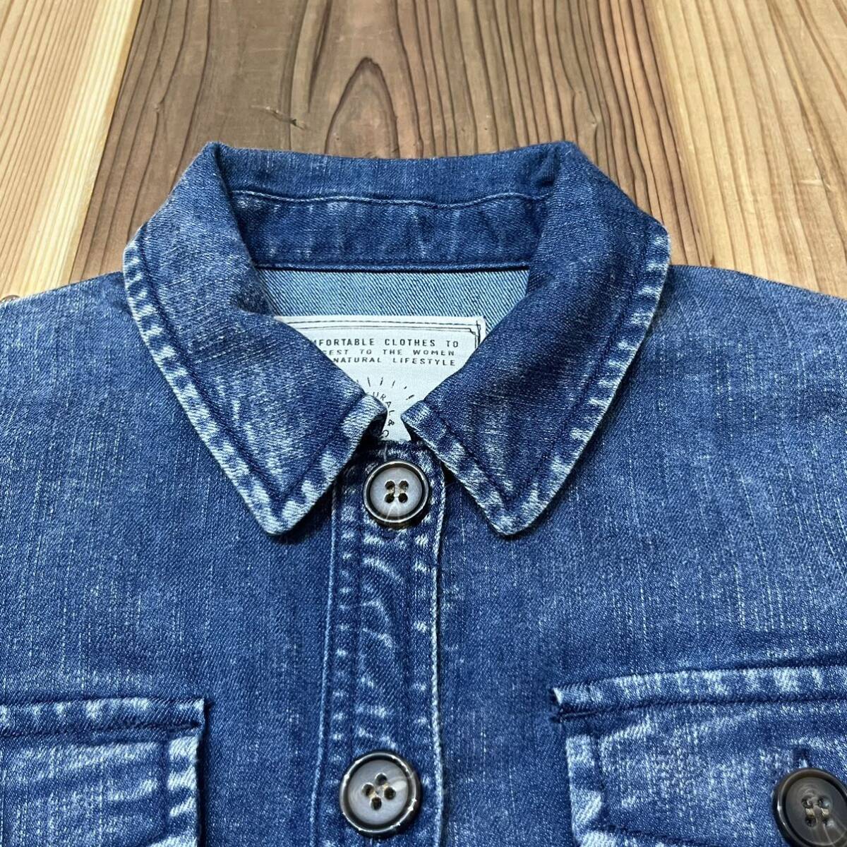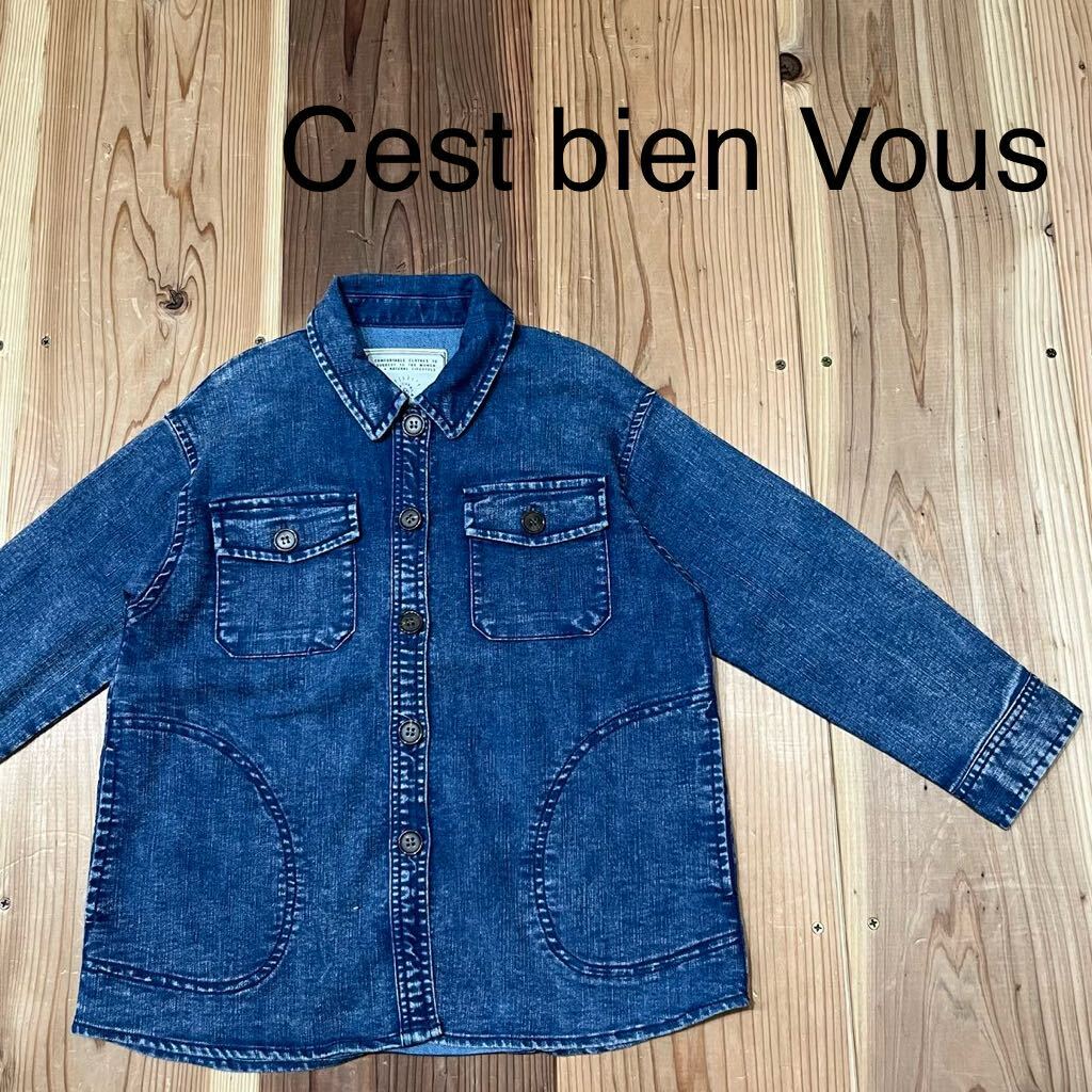 Cest bien Vous セビアンヴー デニムシャツ 長袖 インディゴ 両サイドポケット キッズ レディース サイズ120 玉mc2733
