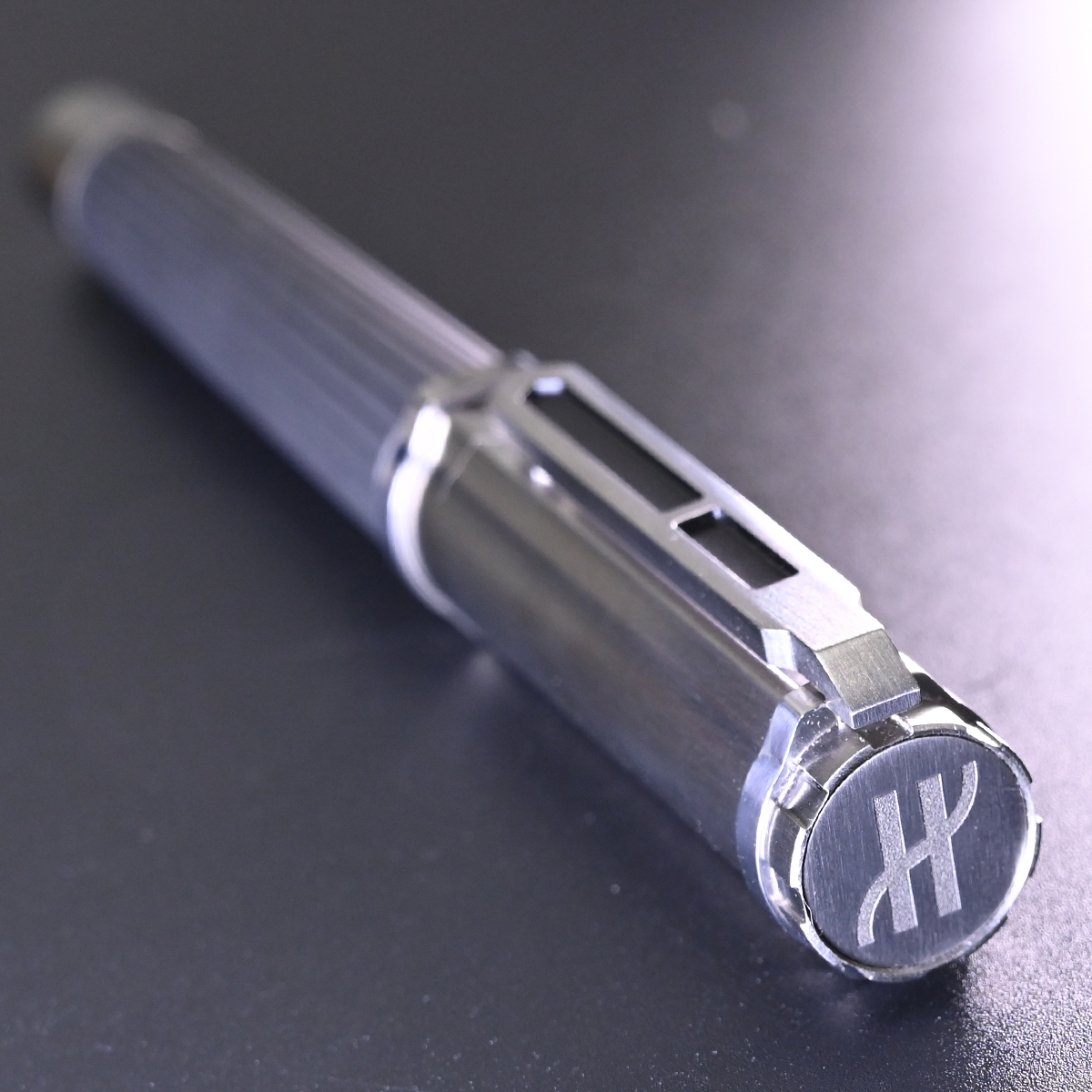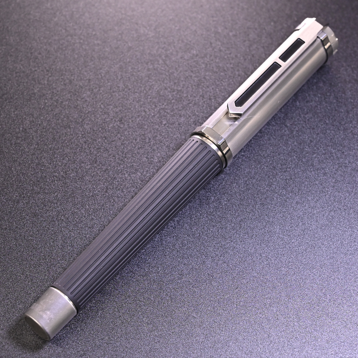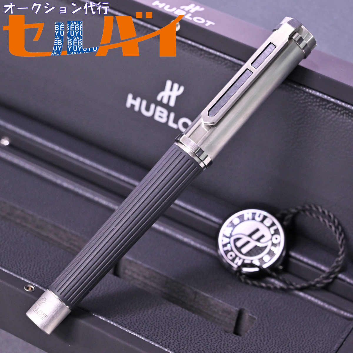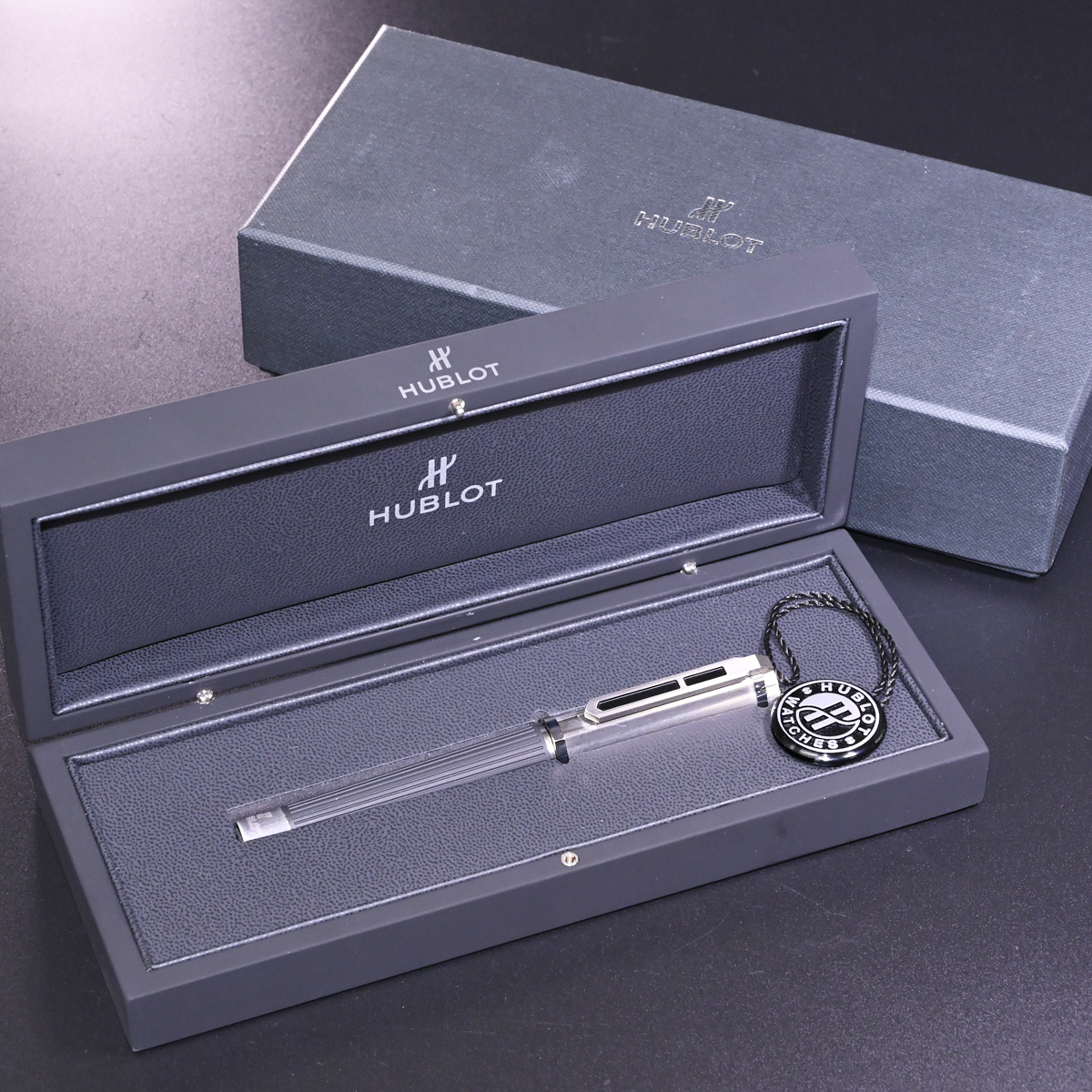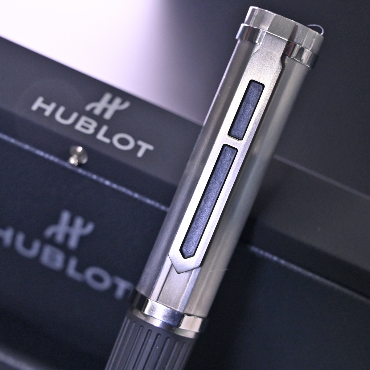 ウブロのビッグバン ボールペンです。 リューズデザインのキャップトップ、長針デザインのクリップ、2点ビスデザインのアンダートップ。 ビッグバンのイメージをそのままペンデザインに起こしたアイコニックな仕上がり。 市場にも全く出てこないモデルなのでお探しの方も非常に多いかと思います。 |