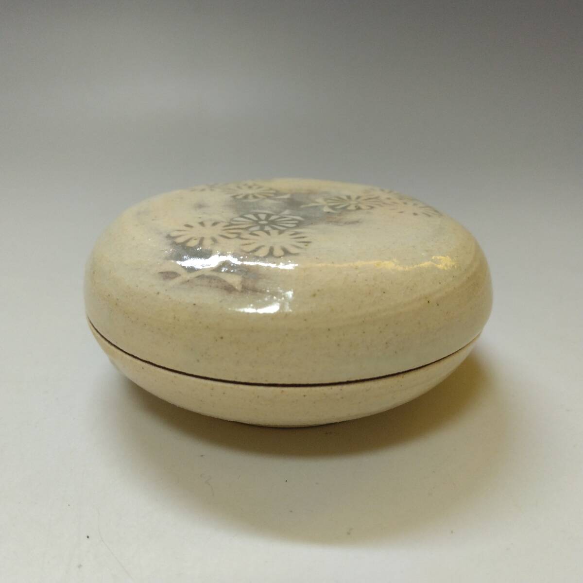 【T-164】青坡窯 李殷九 造 菊花文 香合 共箱付 茶道具 | |||