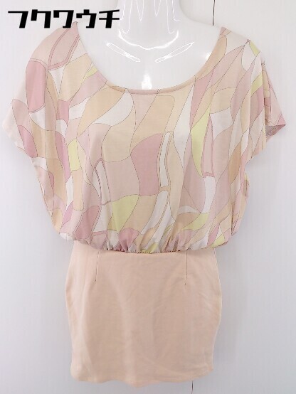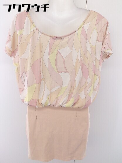 ◇ ●美品● ◎ rienda リエンダ タグ付 総柄 フレンチスリーブ ミニ ワンピース サイズS ピンク ベージュ レディース
