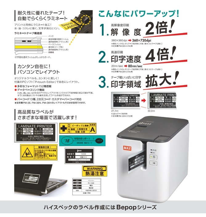 3、テープ幅いっぱいに印字:印字領域 拡大!