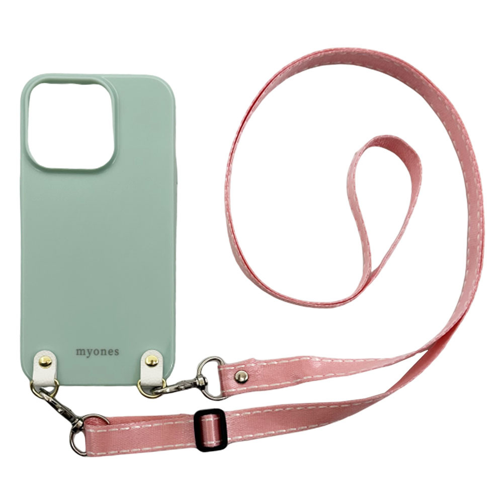 iPhone11(くすみグリーン/ピンク)TPUケース ストラップ アクセサリー 肩掛け 斜めがけ かわいい