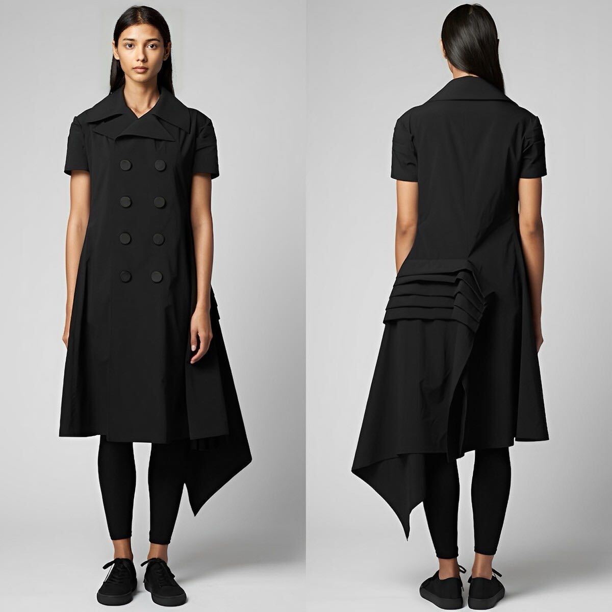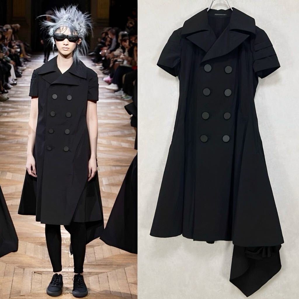 パリコレクションを彩ったトレンチコートラインの1つ。半袖タックコート。