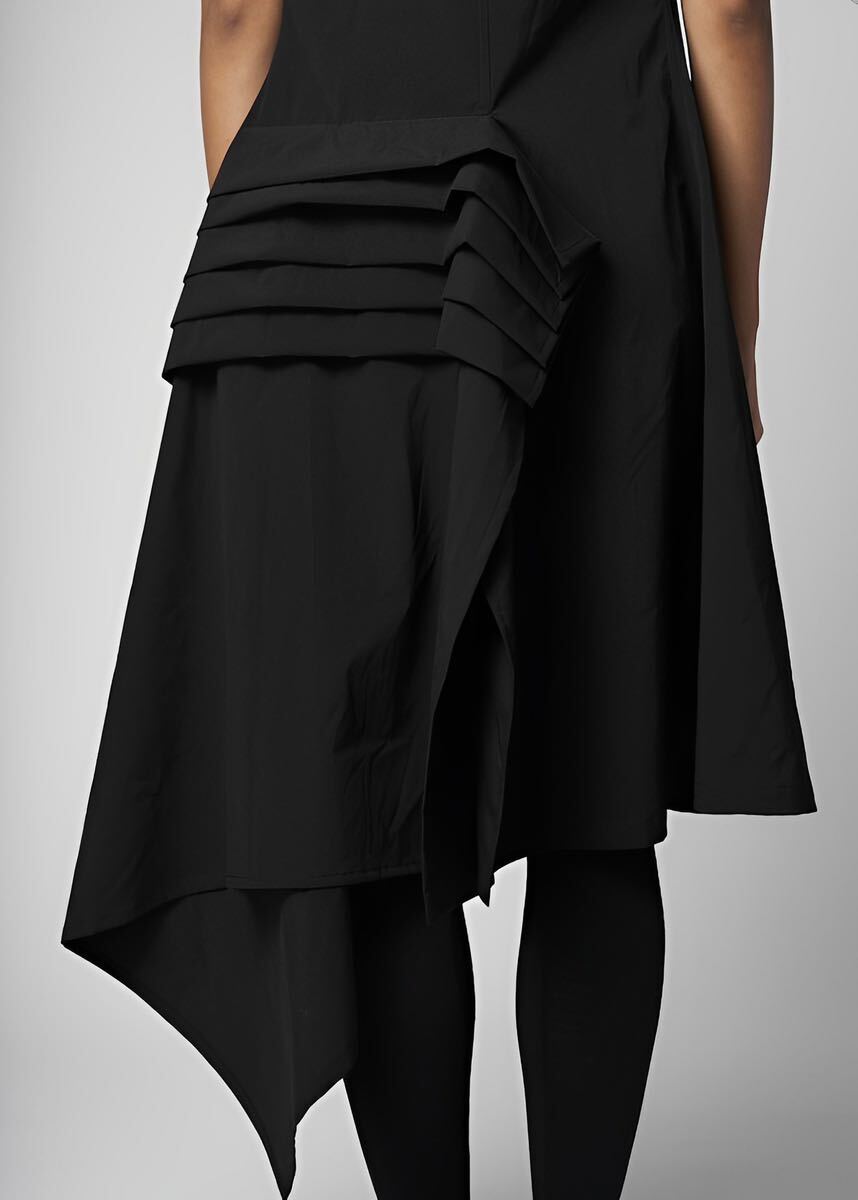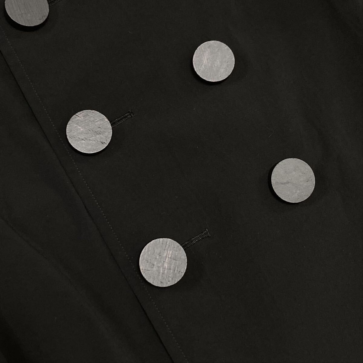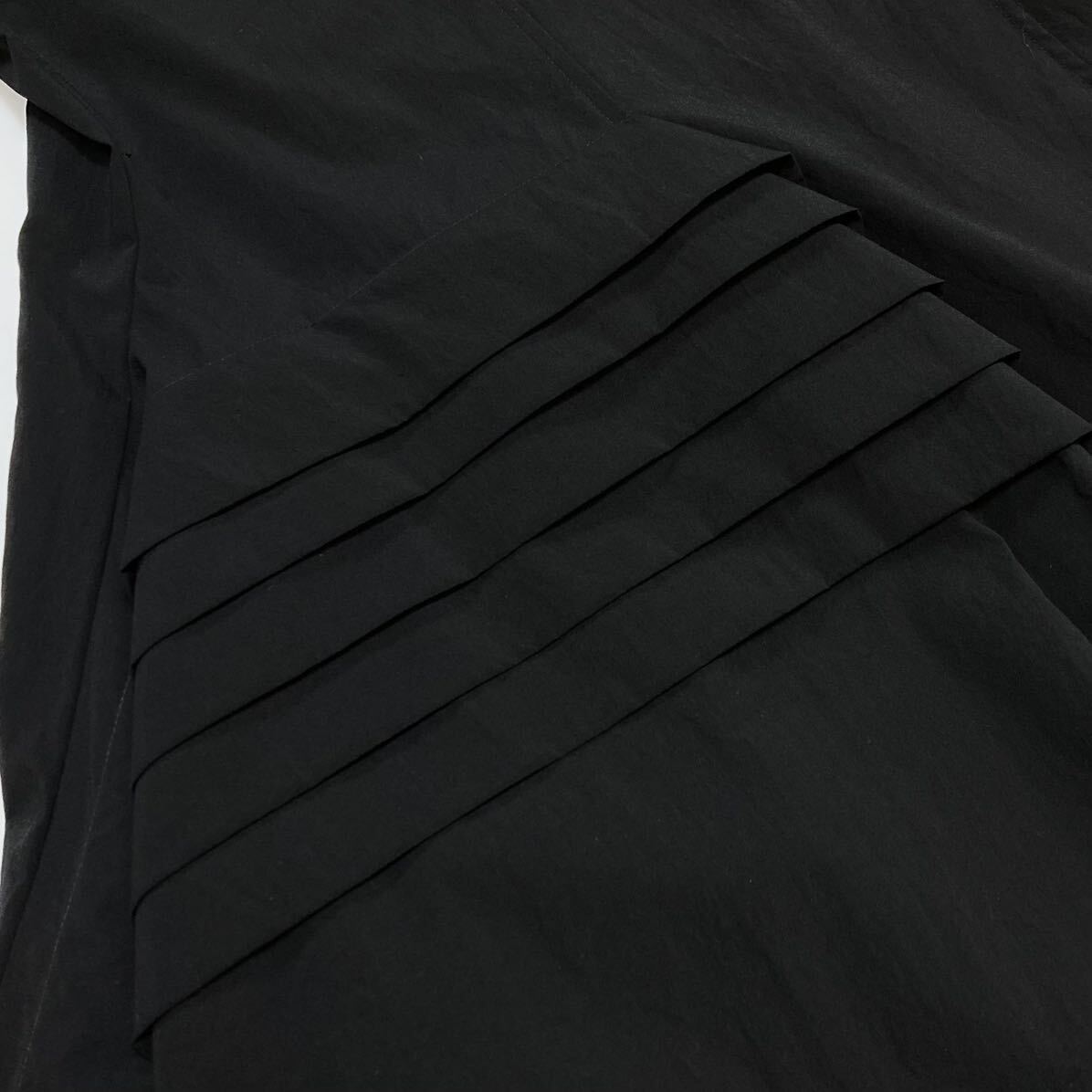 特殊な加工を施したポリエステルタフタ素材で軽い着心地とナチュラルな表情が特徴です。幾重にも重なったタックがエレガントなバックスタイルを生み出しています。コートとしても、ドレスのように着ることも可能です。