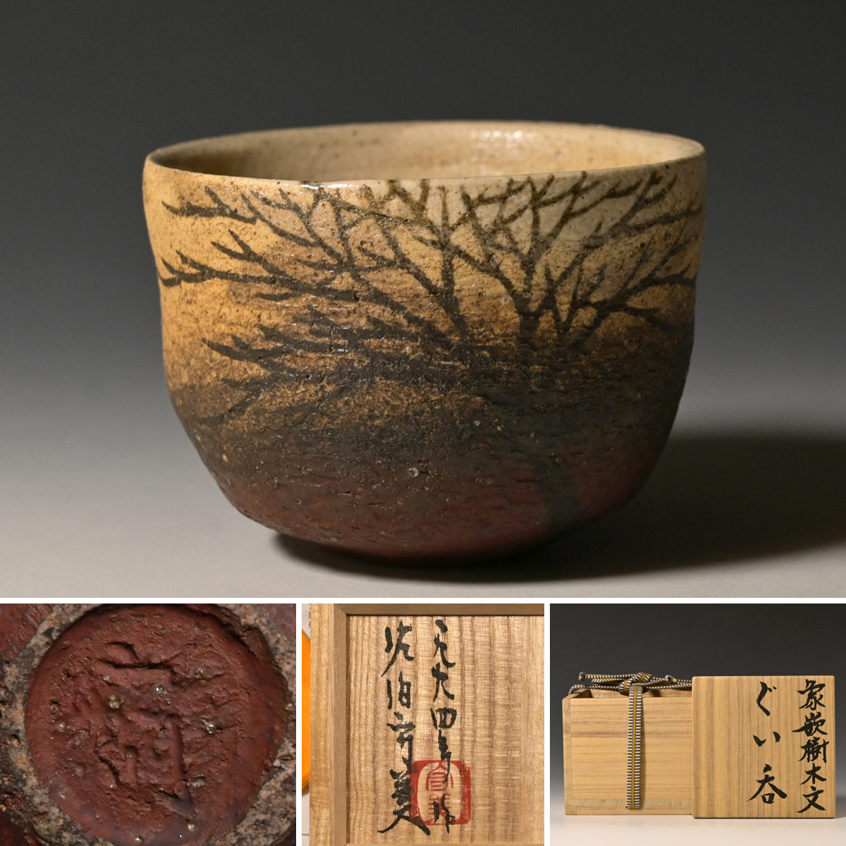 ●優品 未使用と思われる 美品● 【マッジョーレ美術】 佐伯守美 象嵌樹木文ぐい呑 共箱 本物保証