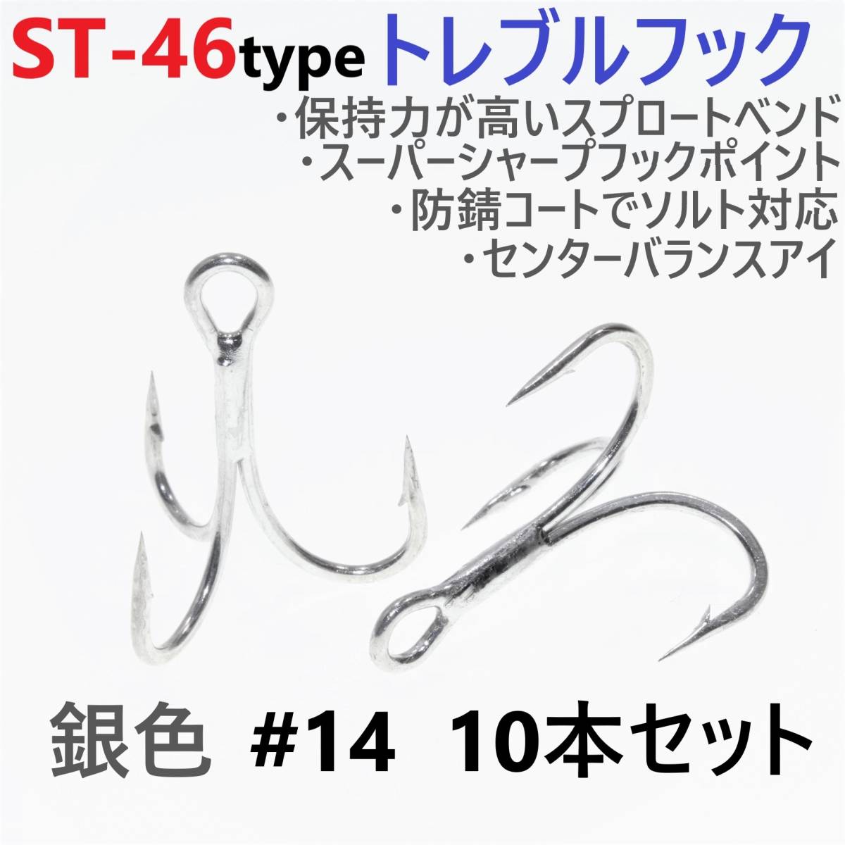 ST-46タイプ防錆トレブルフック シルバー#14 10本セットの出品です。