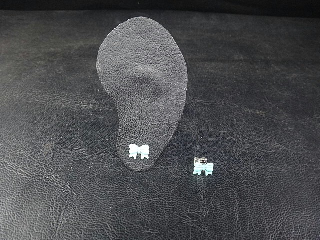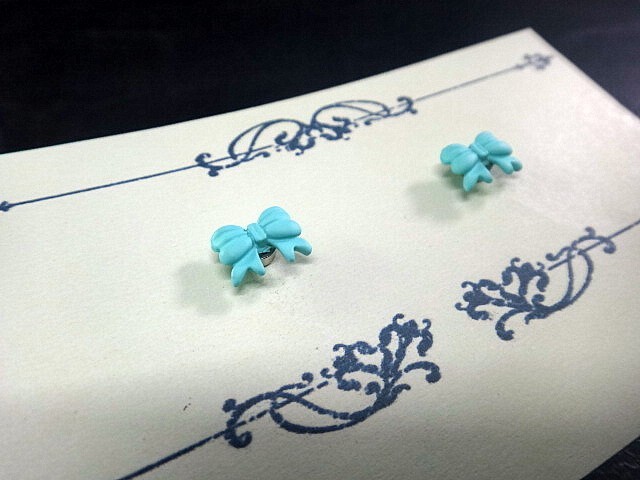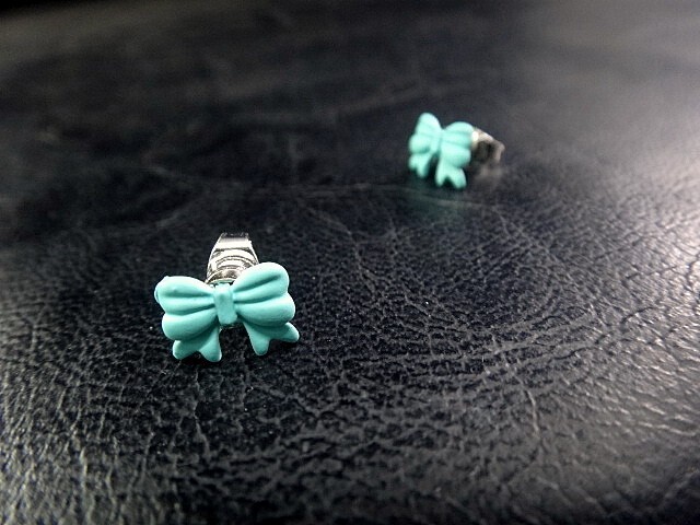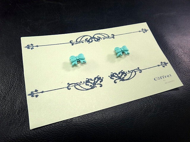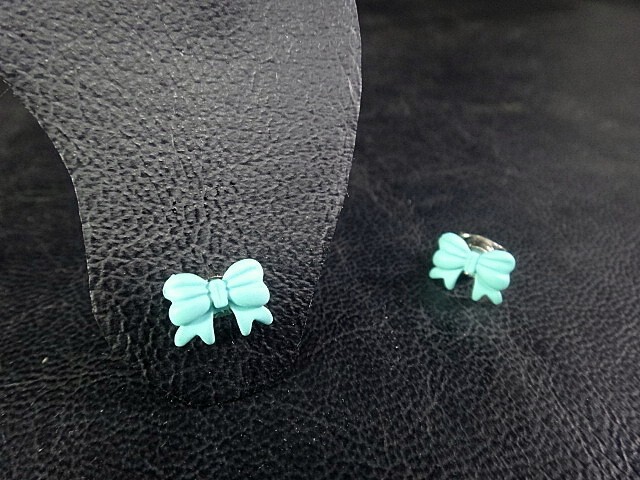 リボン"ブルーグリーン"(ラバーコーティング)マグネットイヤリング(ピアス風)