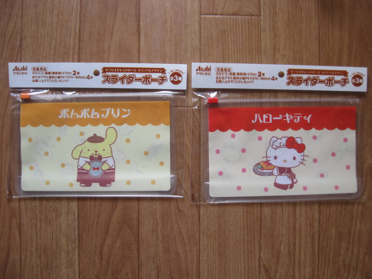 • アサヒさんのペットボトル飲料に付いていた景品で、サンリオキャラクターズ オリジナルデザイン スライダーポーチ 全3種類中の2種類です。
