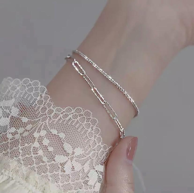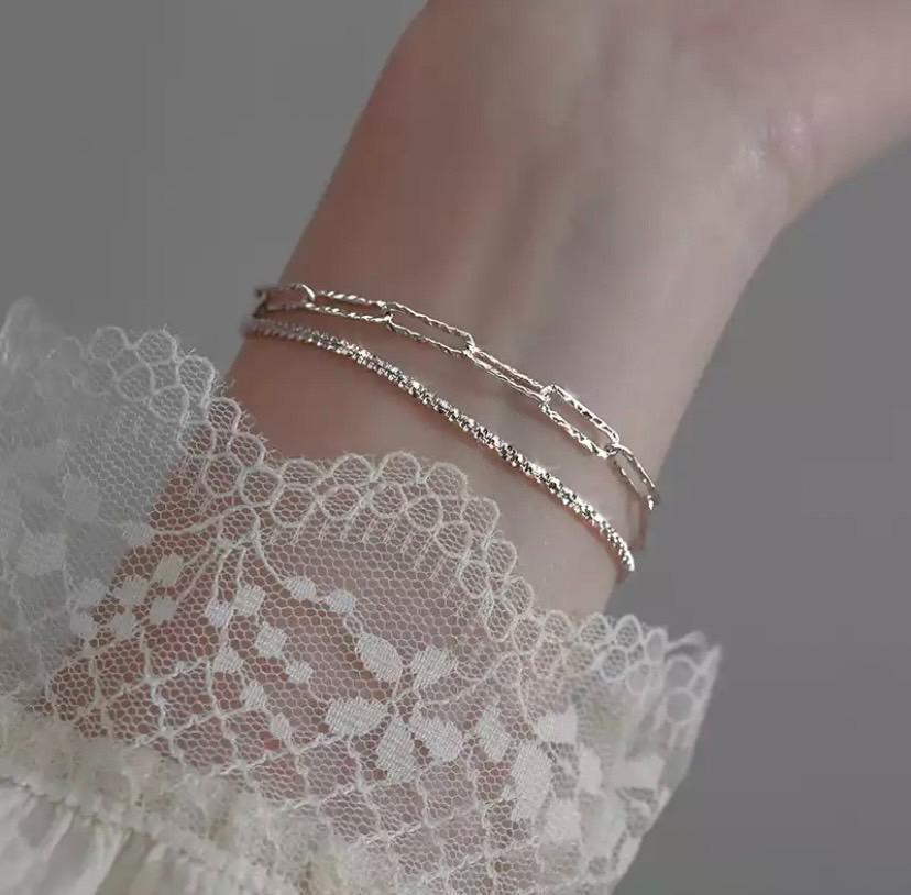 608 2点セット シルバー ブレスレット s925 バングル 韓国 ジュエリー 宝石 ブライダル 結婚式 カジュアル パーティ アクセサリー 韓国