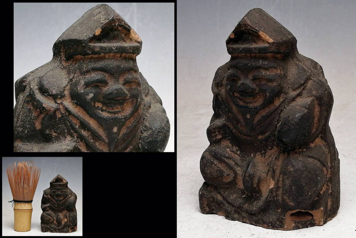 『 時代 民衆仏 』● 素焼 懐中仏 恵比寿 立像 ● 詳細不明 ● 七福神 ● 福の神 ●