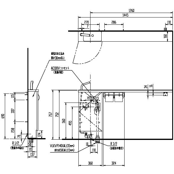 奥行160 自動水栓 カウンター長さ:1445ミリ