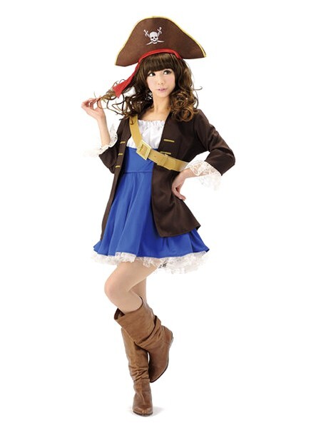 奉仕品 パイレーツレディ 海賊 ハロウィン 仮装 コスプレ 衣装 青 女性用 大人用 返品不可