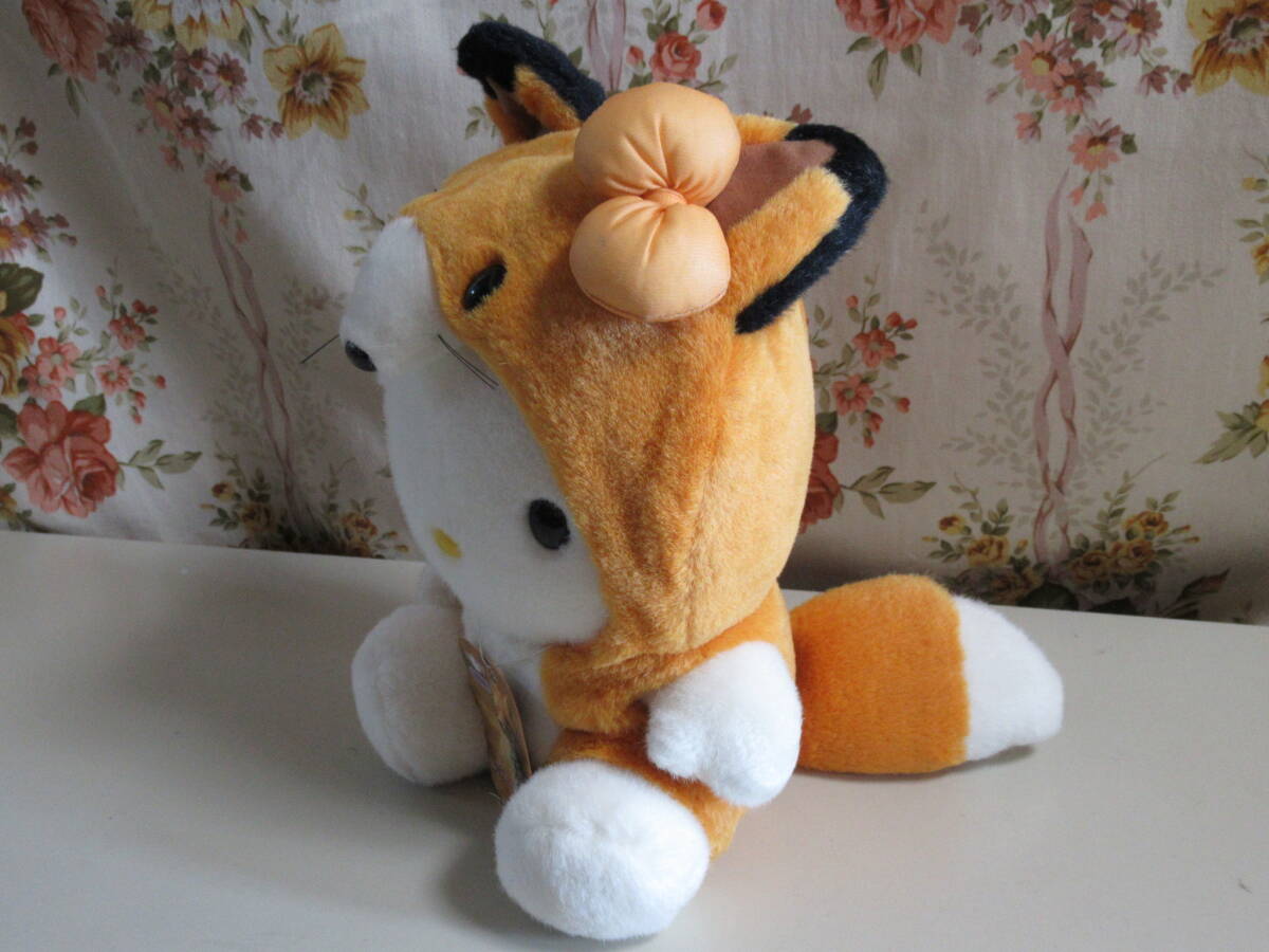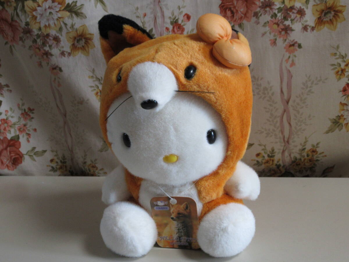 R6 04★サンリオ ハローキティ 着ぐるみ ご当地 北海道限定 キタキツネ ぬいぐるみ 紙タグ付き 長期保管品