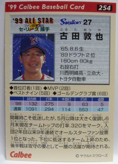 カルビープロ野球カード99年#254【古田 敦也(ヤクルト スワローズ)】平成11年1999年チップスおまけ食玩トレーディングカード【中古】送料込