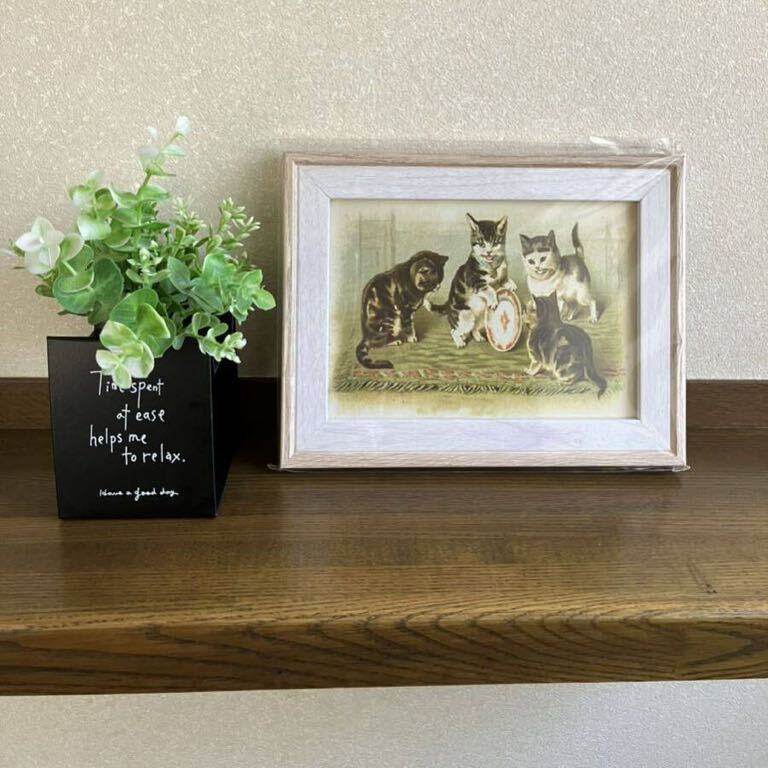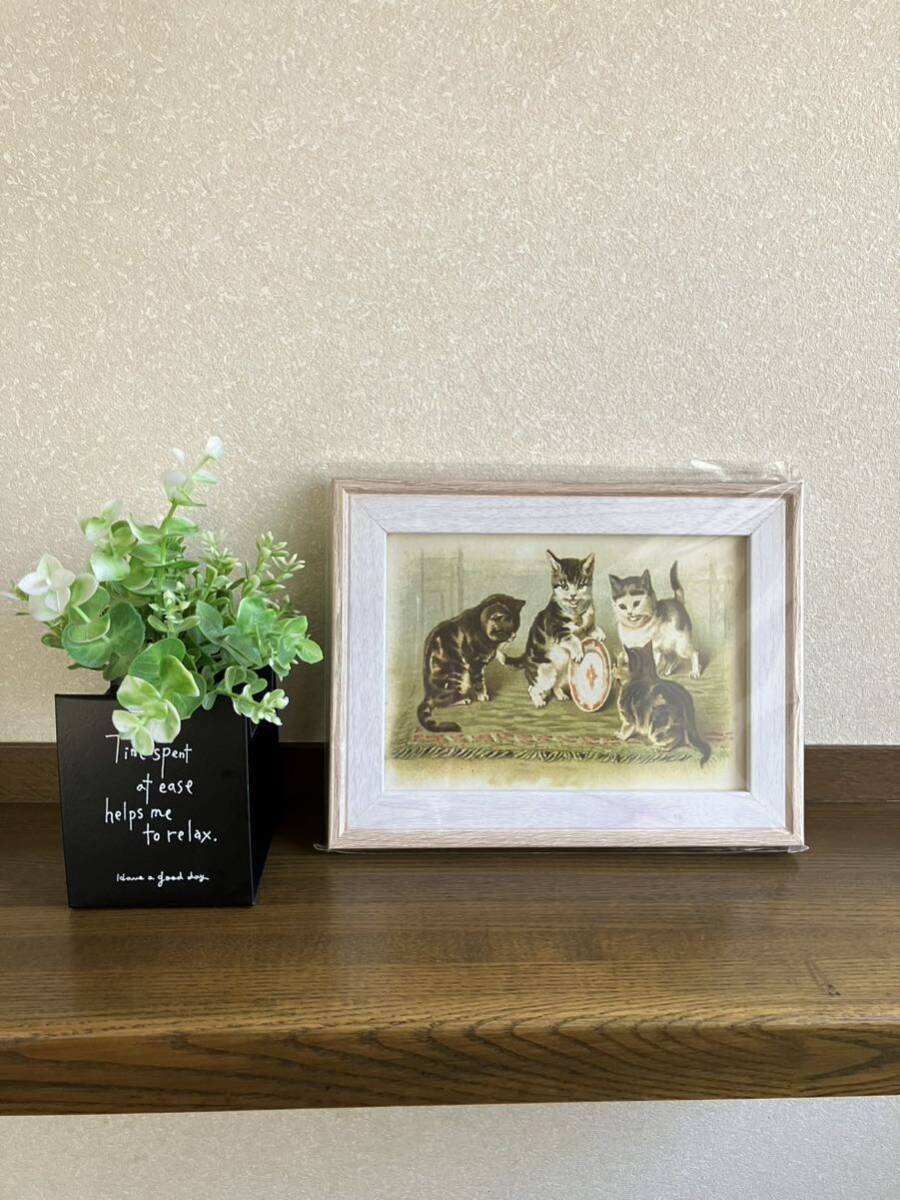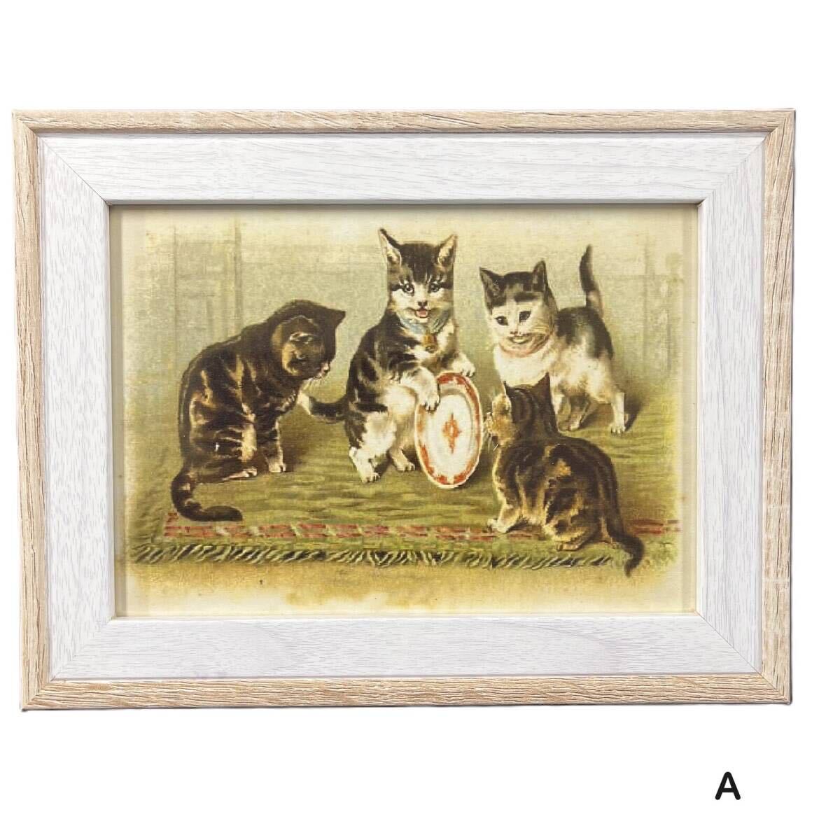 レトロな猫ちゃんたちの絵柄とナチュラルなフレームが素敵な