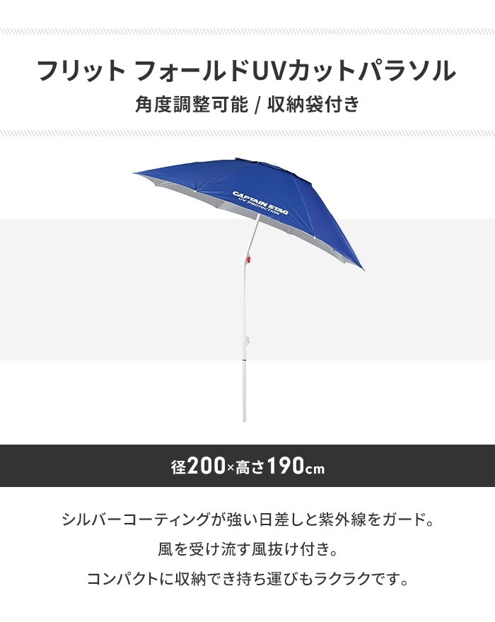 | パラソル UVカット 径200 高さ190 ビーチパラソル 日よけ ブルー 収納バッグ付き 風抜き付き 折りたたみ ビーチテント サンシェード 野外 紫外線カット キャンプ アウトドア レジャー 海 海水浴 ポリエステル 夏 サンシェード サンパラソル ガーデンパラソル シェード シルバーコーティング テラス屋根 屋根テント BBQ 海 砂浜 ビーチ シェードパラソル バーベキュー おしゃれ シンプル 折り畳み 公園 運動会 日除け パラソルサンシェード アウトドア用品 キャンプ用品 アウトドアグッズ |