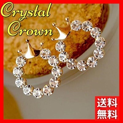 ピアス ゴールド 王冠 クラウン フープ レディース 韓国 クリスタル ラウンド サークル プリンセス ファッション ジュエリー 女性 ガール ノーブランド