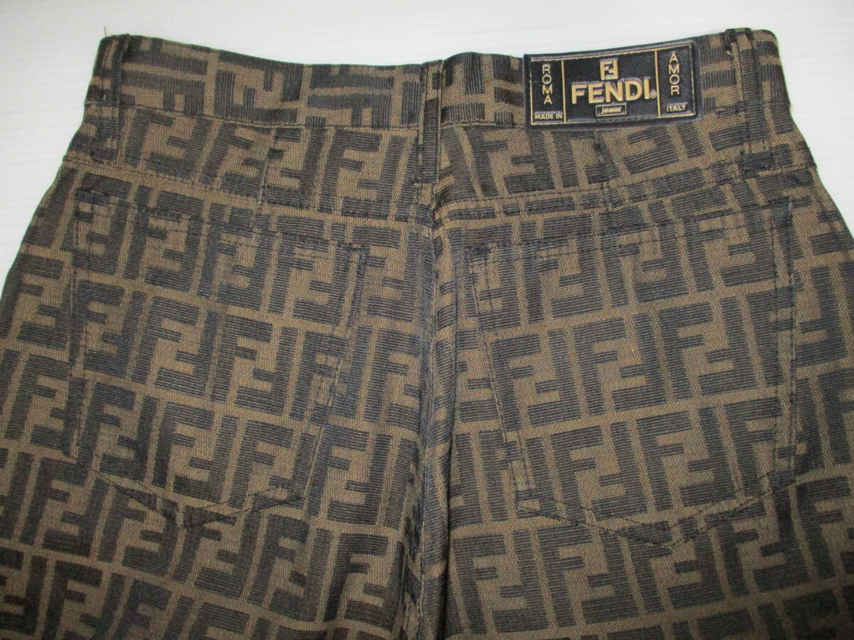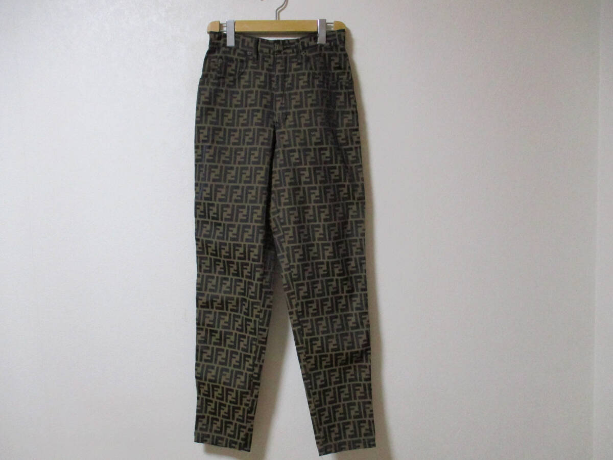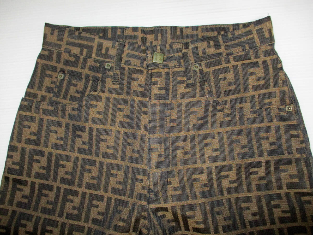 イタリア製☆FENDI jeans フェンディ パンツ ズッカ柄 ブラウン系 サイズ I 43 INCH 29 です。 イタリア製です。素材はポリエステル70、綿30です。色はブラウン系です。色は画像でご判断ください。