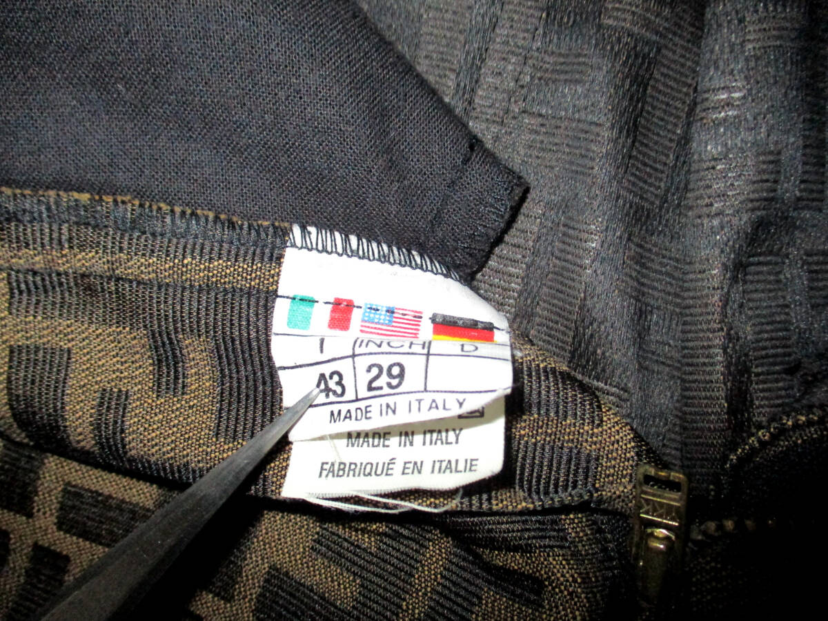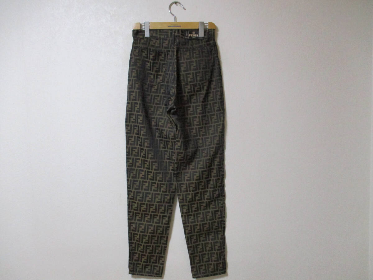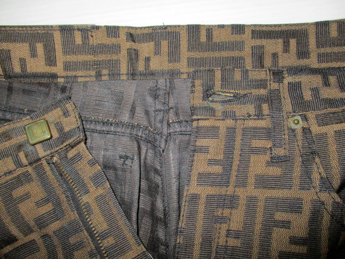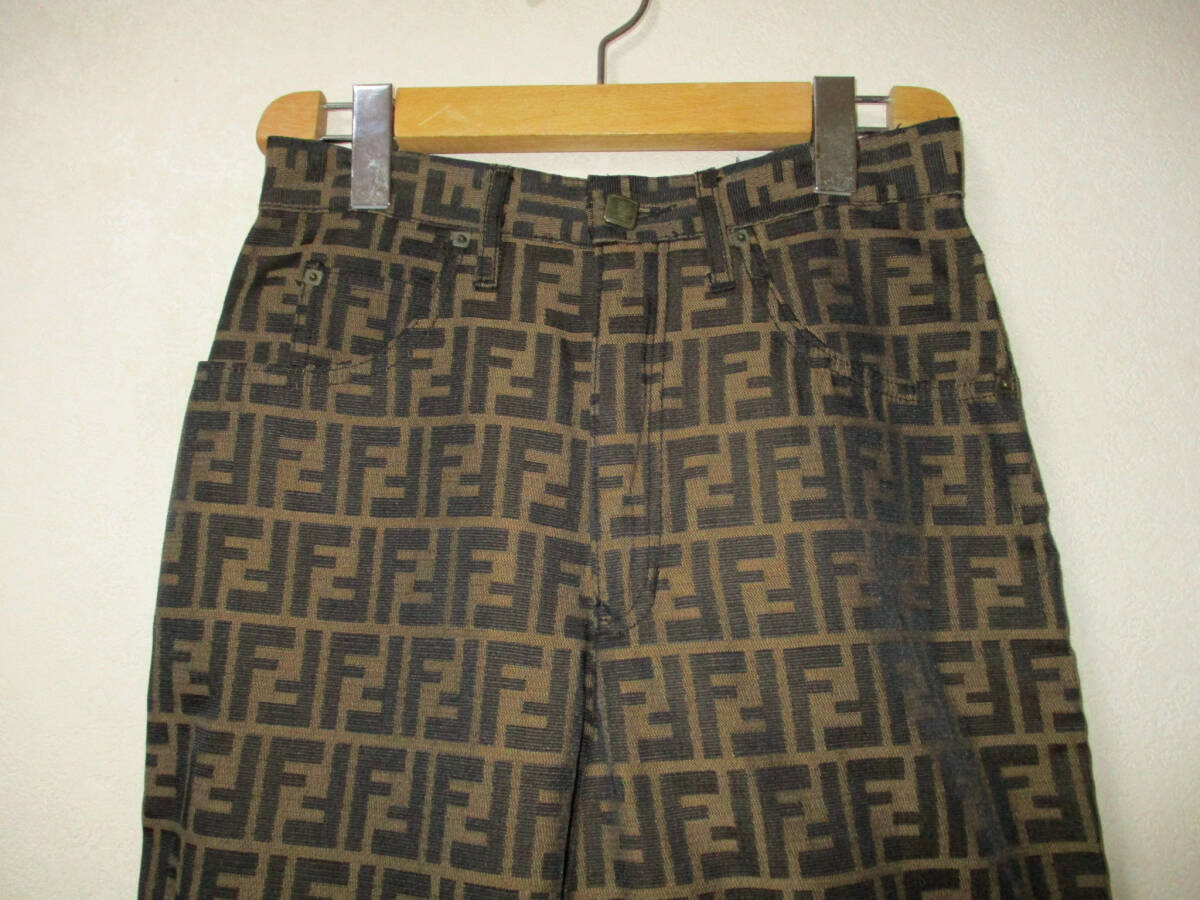 イタリア製☆FENDI jeans フェンディ パンツ ズッカ柄 ブラウン系 サイズ I 43 INCH 29 です。 イタリア製です。素材はポリエステル70、綿30です。色はブラウン系です。色は画像でご判断ください。