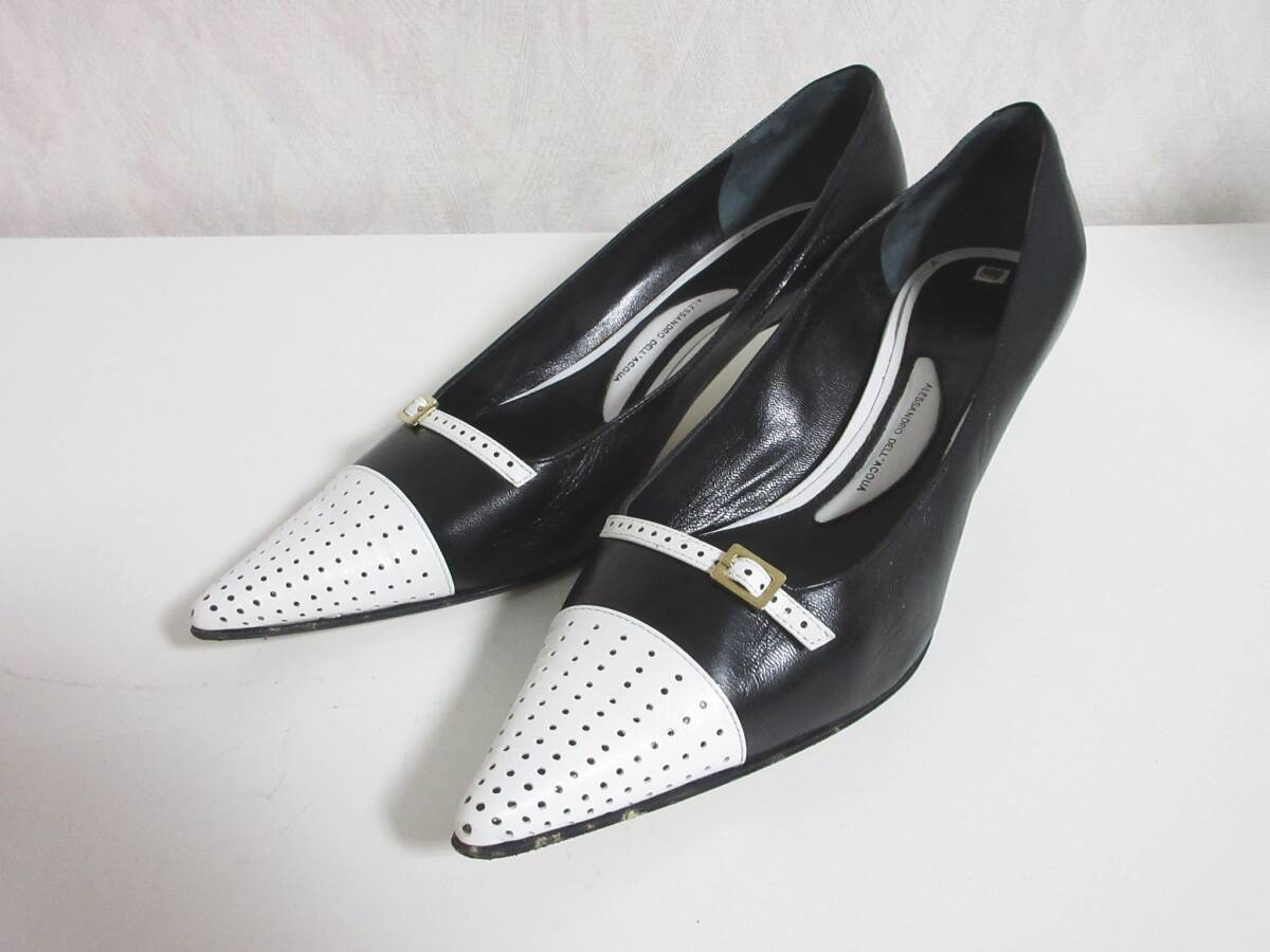 ALESSANDRO DELL'ACQUA アレッサンドロ デラクア レザー パンチング パンプス 35 1/2 (約22.5)ブラック hj1246