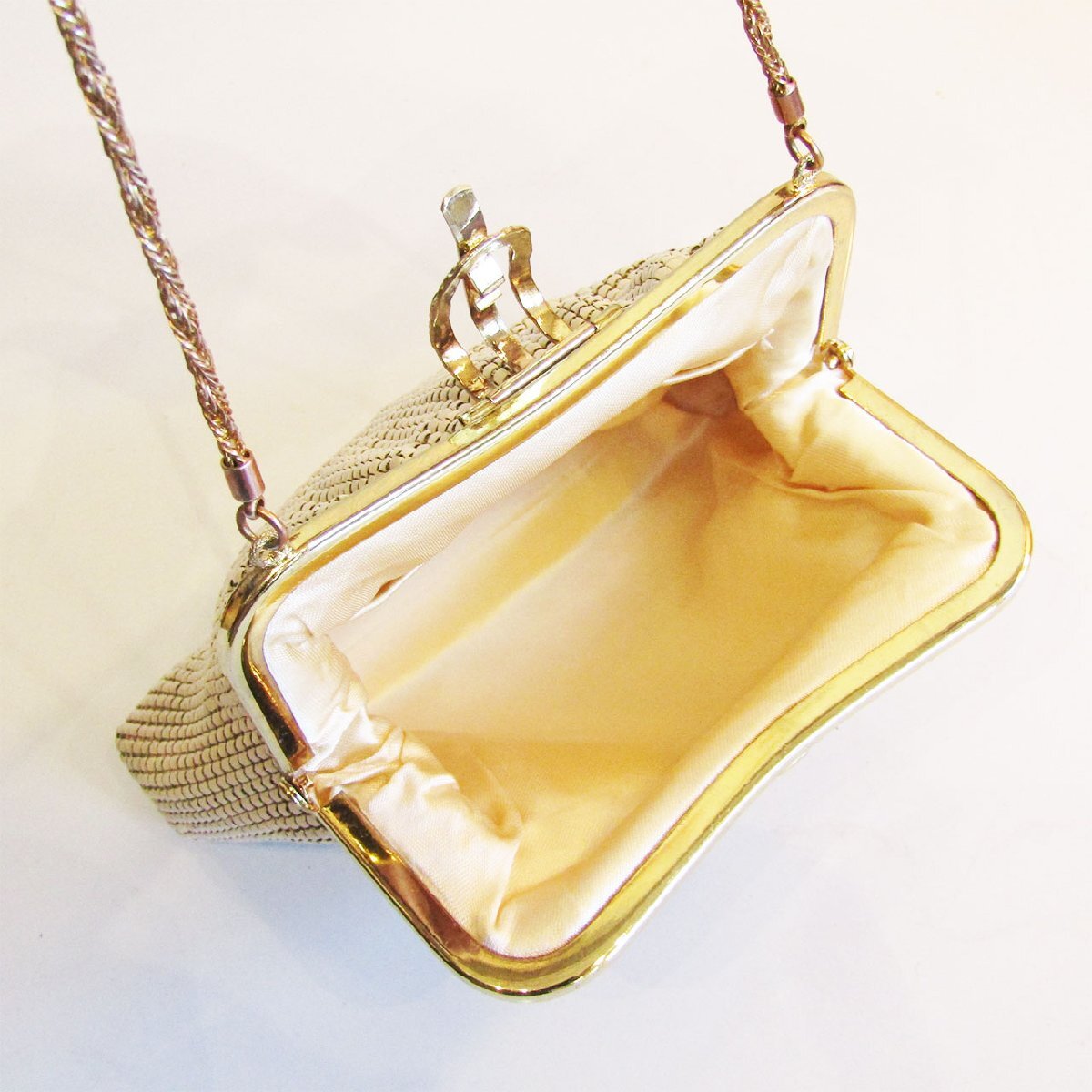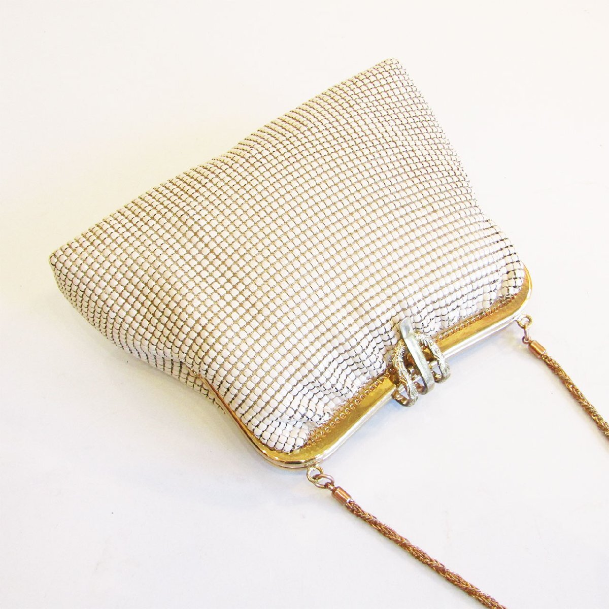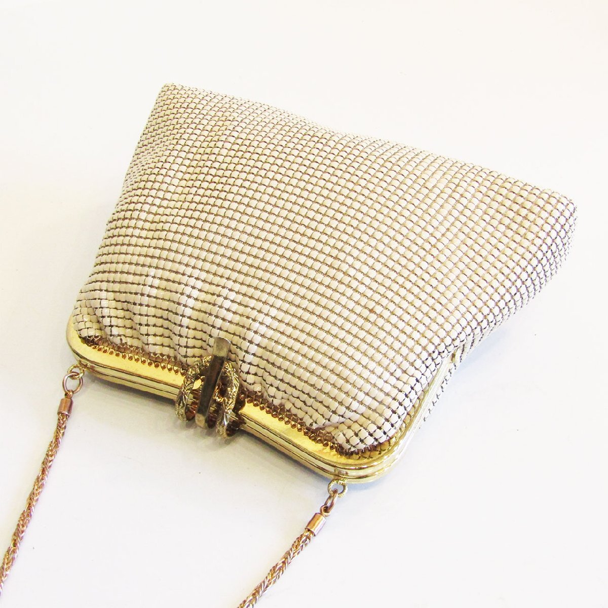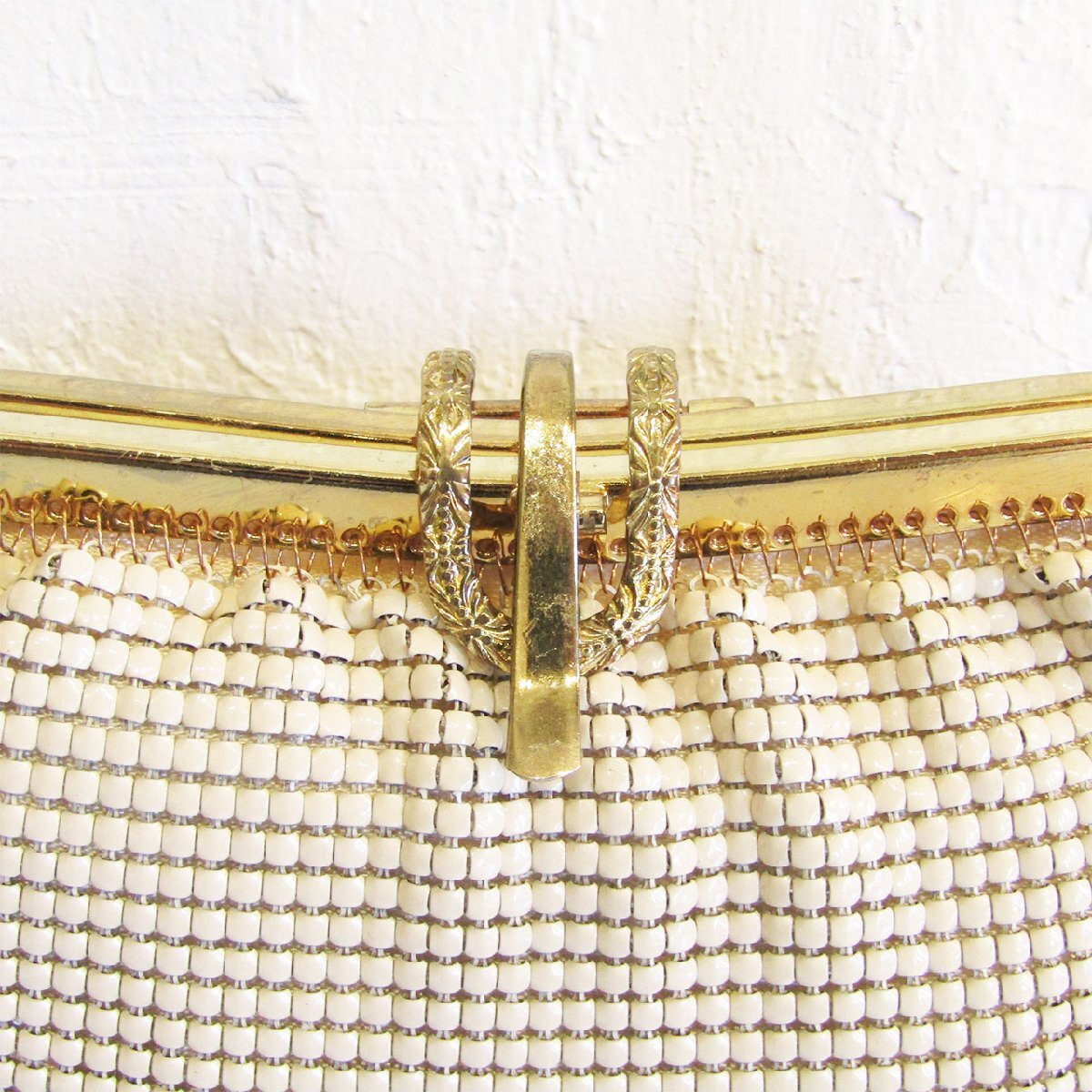 アイボリーカラーのメタルメッシュにゴールドカラーのチェーンと金具がマッチしております。