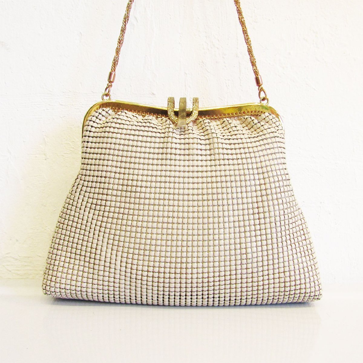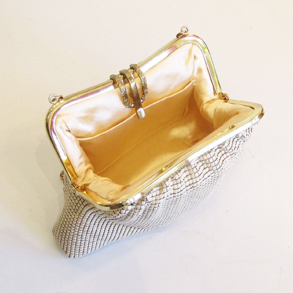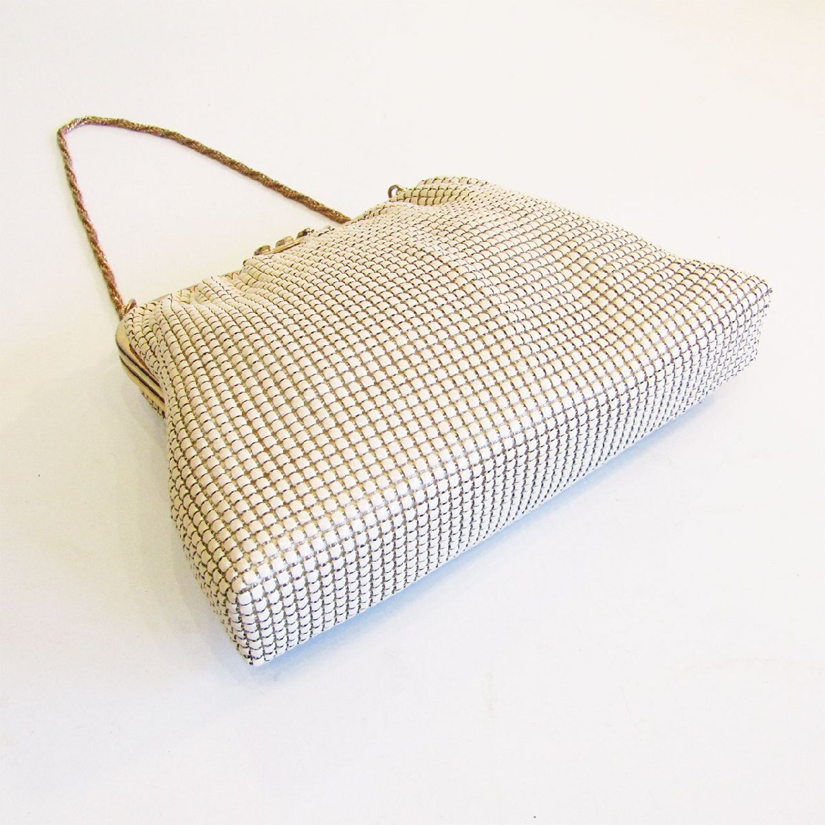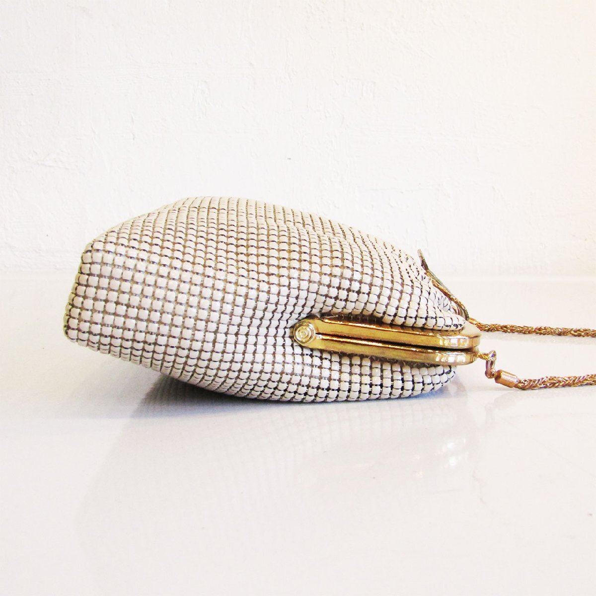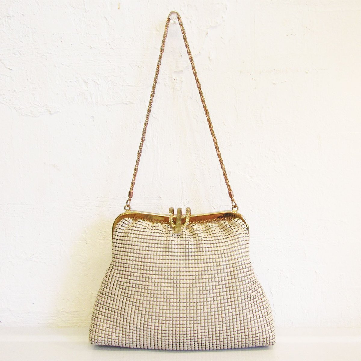 アイボリーカラーのメタルメッシュにゴールドカラーのチェーンと金具がマッチしております。