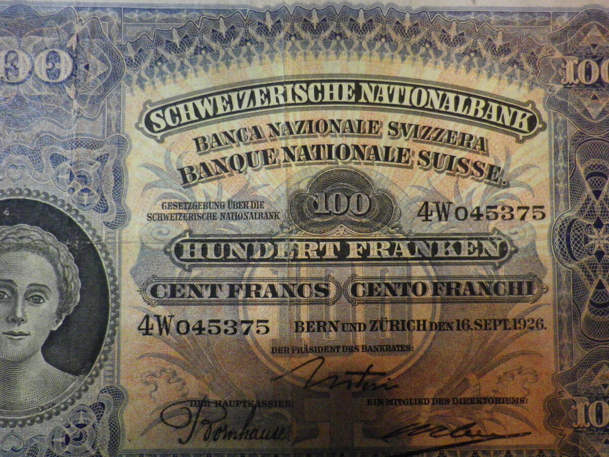 スイス 1926年 大判 100Francs 並品