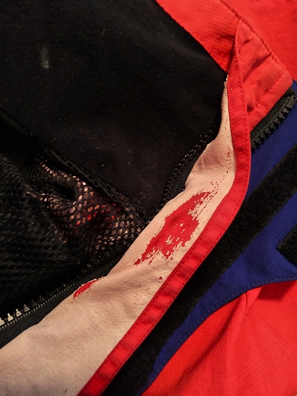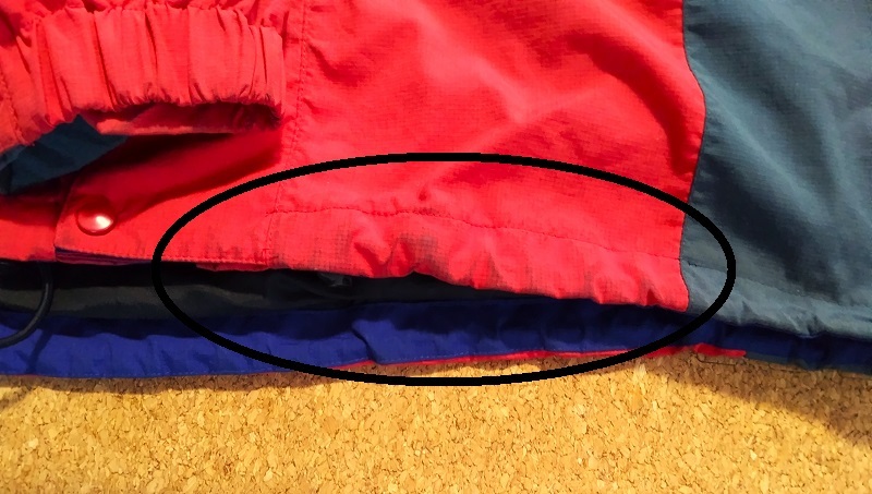 また、内側の防水コーティングがポロポロと剥がれ落ちています