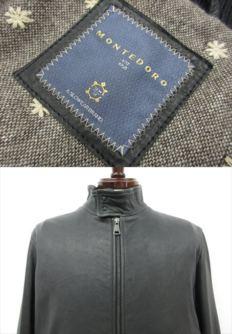 定価176.000円 未使用【モンテドーロ MONTEDORO】6P0011 MP011 930 羊革 ラムレザージャケット ブルゾン(メンズ)XXL 黒系 伊製■17SLJ0114